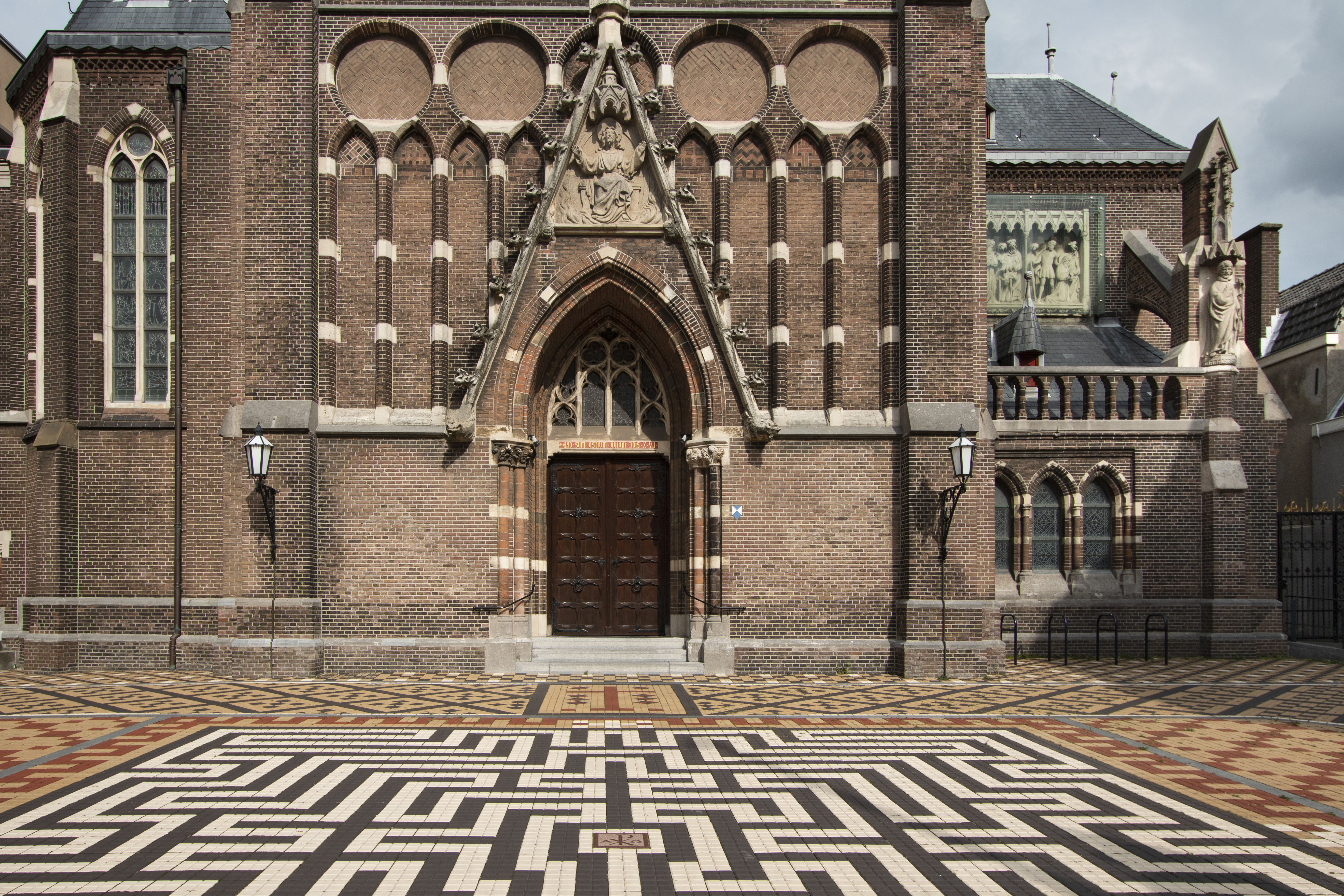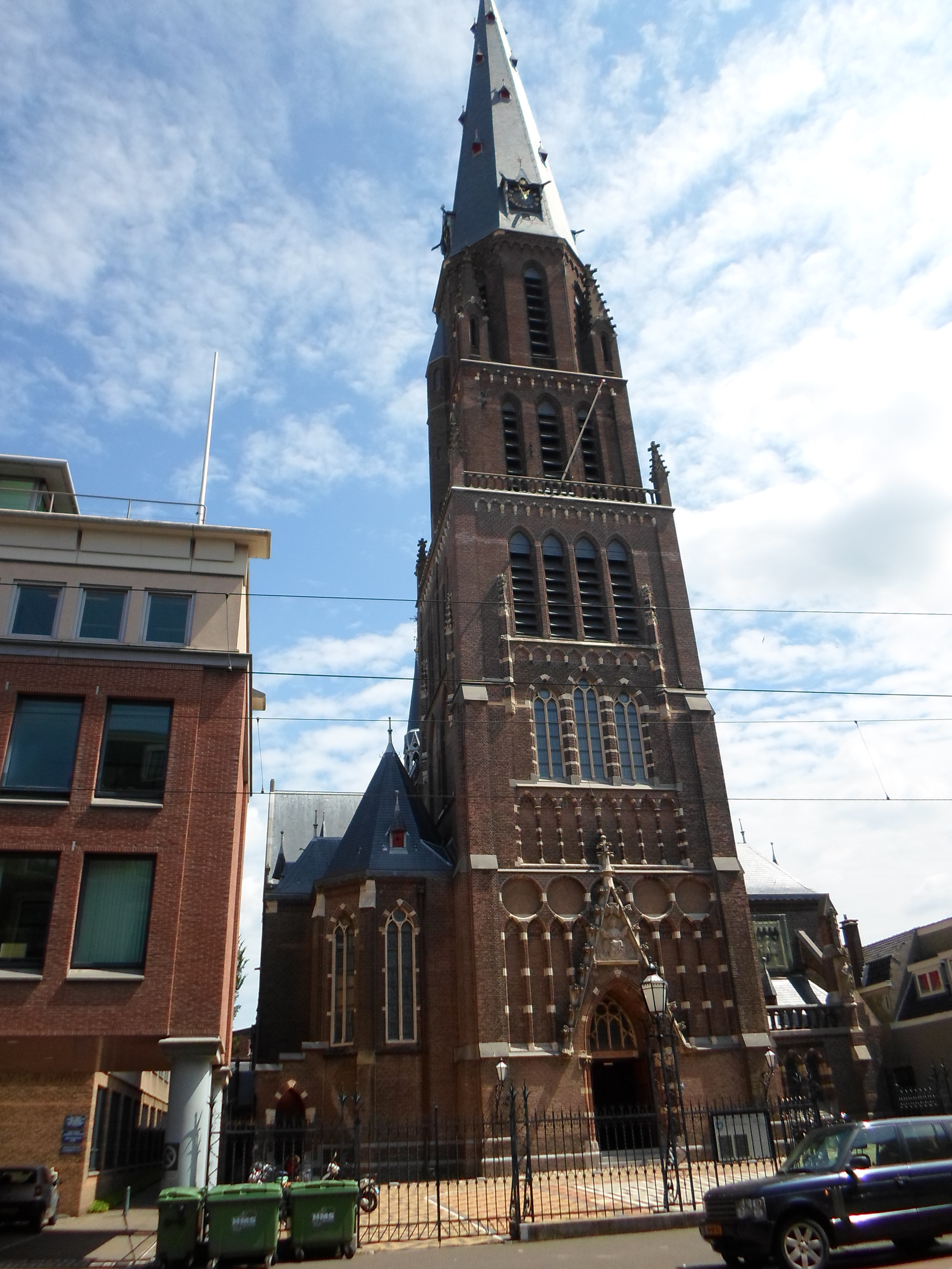 R.K. KERK van de H. Jacobus de Meerdere gebouwd in 1875-1878 naar ontwerp van P.J.H. Cuypers in neogotische stijl; smeedijzeren hek met sierlantaarns aan de Parkstraat.