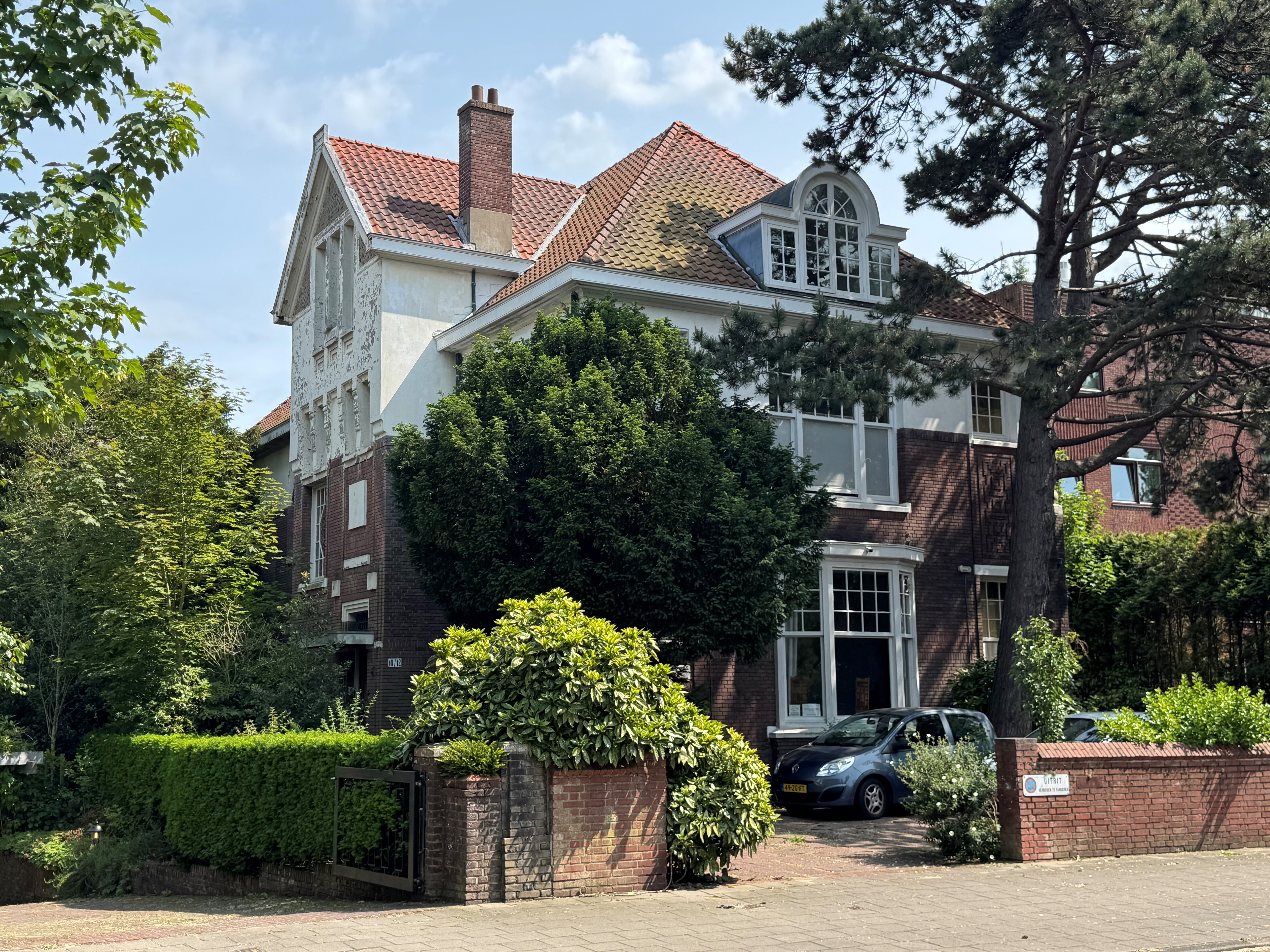 Vrijstaande villa uit 1914 van E. Cuypers, gebouwd in historiserende stijl met invloeden uit Nederlands-Indië