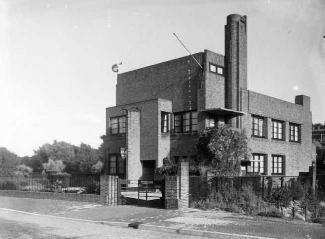 In 1920 door W.M. Dudok in cubistisch expressionistische trant ontworpen, geheel vrijstaand woonhuis - genaamd Sevensteyn -. Het is opgetrokken in baksteen op een hellend terrein, op een onregelmatige plattegrond, met souterrain, beganegrond, verdieping en tussenverdieping, en samengesteld uit verschillende bouwvolumes die elk plat zijn afgedekt en die bij de hoeken van afwijkend metselwerk - hetzij springend, hetzij naar buiten uitstekend, dan wel met hoge rollagen - zijn voorzien; de in houten kozijnen gevatte vensters bezitten een horizontale, drieledige roedenverdeling en zijn enkel, per twee of per drie gekoppeld aangebracht. De hoofdingang bevindt zich in het midden van de N-gevel, in een portiek dat rechts in een naar voren uitgebouwd twee bouwlagen tellend bouwblok links is ondergebracht waartegen een schuine steunbeer is geplaatst met hijsbalk waaraan in oorsprong een gesmede lantaarn was opgehangen; de teruggerooide rechtergevelhelft bevat beneden een drietal trapezium-vormige ramen met glas-in-loodverdeling en bekroond door metselwerk en waarvoor een gemetselde bloembak is geplaatst, en op de verdieping gekoppelde vensters waarbij geheel rechts zich de loggia bevindt boven de in de NW-hoek ondergebrachte garderoberuimten, overhuifd door een betonnen luifel en beschut door de doorgetrokken baksteenmuren, die rechts voor een spuier zijn onderbroken; de bovenbouw der tussenverdiepingen, die bij de loggia is teruggerooid, is geheel blind, maar was in oorsprong op de NO-hoek voorzien van een gesmede windhaan naar ontwerp van W.M. Dudok.