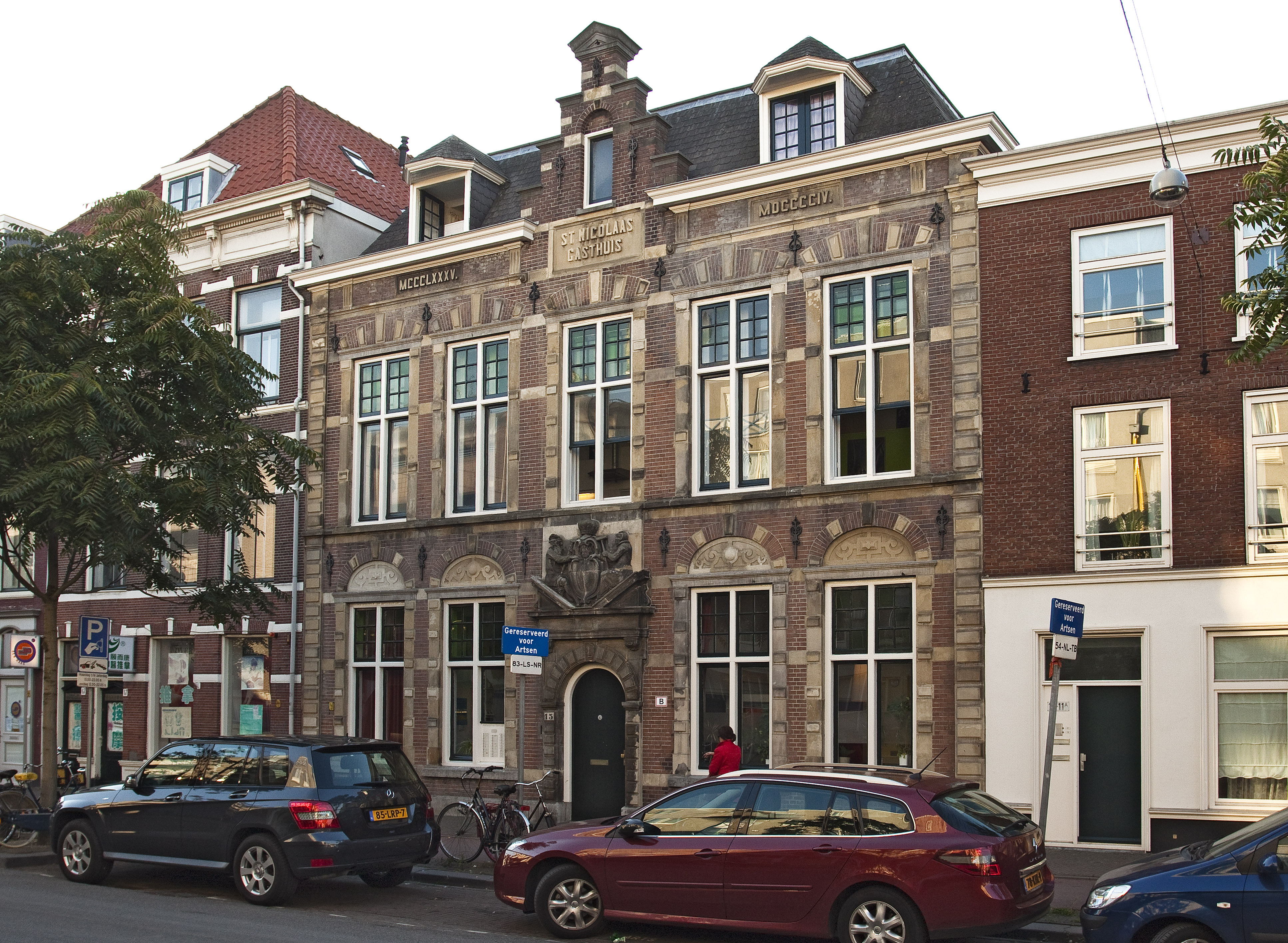 Natuurstenen POORT uit het tweede kwart van de 17e eeuw, afkomstig van het oorspronkelijke St. Nicolaasgasthuis in de Halstraat; van algemeen belang wegens bijzondere oudheidkundige en kunsthistorische waarde.
