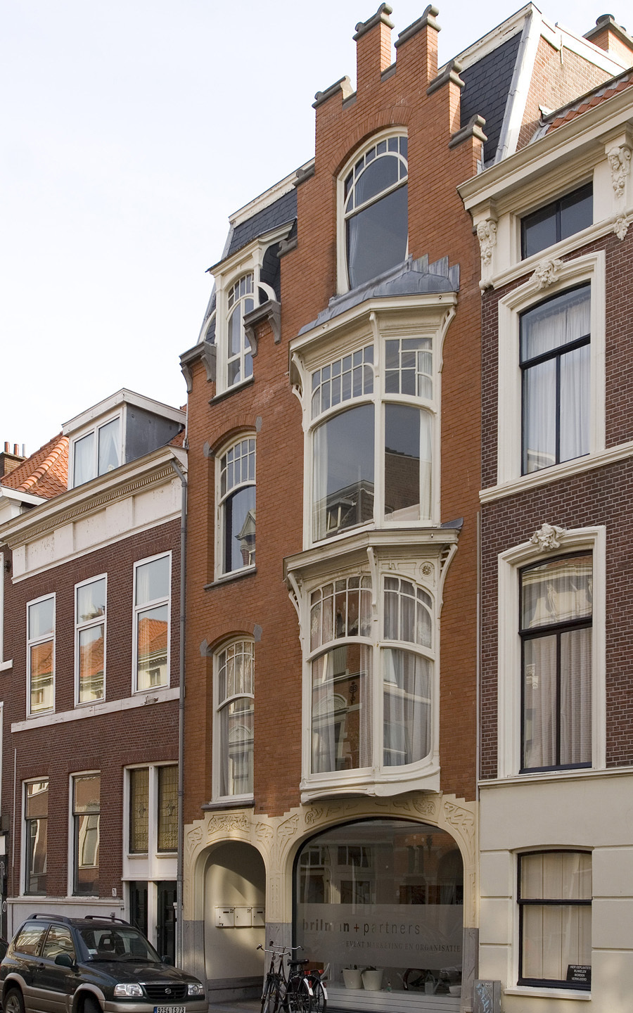 Dit pand ontwierp J.W. Bosboom voor zichzelf als woning, kantoor en tekenkamer. Het bestaat uit drie bouwlagen en kapverdieping onder een licht geknikte kap met hoog voorschild. De dakbedekking van shingles is niet oorspronkelijk. De twee vensterassen brede bakstenen gevel in rode verblendsteen heeft een hardstenen winkelpui die rijkelijk voorzien is van Art Nouveau beeldhouwwerk. Links van de pui is een portiek met twee authentieke deuren. In de penanten van de portiek is de signatuur van de bouwmeester aangebracht met het jaartal 1901 en de gestyleerde initialen van de ontwerper: J.W.B. Boven de winkelpui zijn ter hoogte van de tweede en derde bouwlaag driezijdige houten erkers. Dit deel van de voorgevel wordt bekroond door een trapgevel. Links van de bekroning valt een versierde dakkapel op; deze onderbreekt de dakgootlijst. Het houtwerk van deuren en vensters is zorgvuldig in Art Nouveau gedetailleerd; deze zijn getoogd en hebben onderverdeelde bovenlichten. Het oorspronkelijke interieur is grotendeels bewaard gebleven. Op de eerste verdieping rijke interieurs in Art Nouveau: voor- en achterkamer met betimmeringen, plafonds en porte-brisée. Het kantoor op de eerste verdieping is geheel uitgevoerd in neo-renaissance met betimmering, wandbekleding en dessus-de-portes met geschilderde Haagse en Zwolse stadsgezichten. Het trappehuis is in rijke Art Nouveau uitgevoerd.