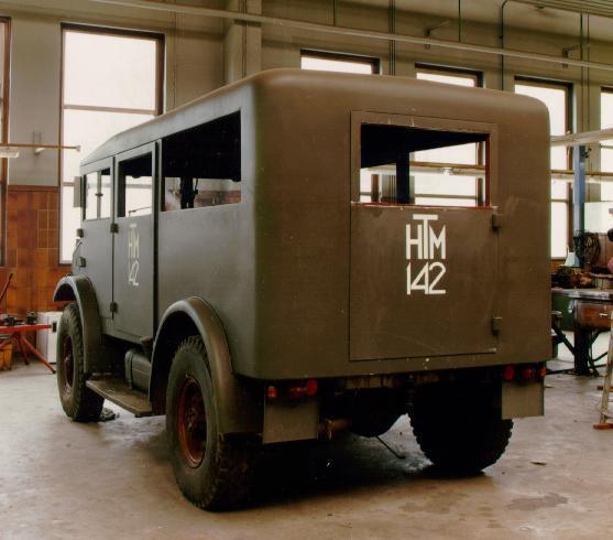 Een dergelijk Chevrolet busje, een militair zogenaamde 'Staff-car' was in 1947-1948 in het HTM-wagenpark opgenomen onder nummer 142. Het heeft circa een jaar dienst gedaan op lijn Y van de Geestbrugweg naar Ypenburg. In de loop van 1948 werd deze noodbus weer vervangen door beschikbaar normaal busmateriaal.