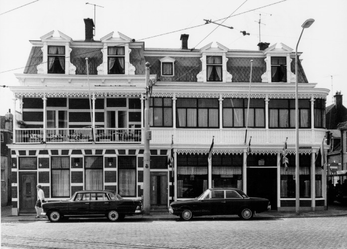 Aan drie zijden vrijstaand pension-woonhuis annex cafe-restaurant uit ca. 1890 in neo-renaissancestijl naar ontwerp van J.H. van der Lubbe. In 1900 werd, eveneens naar ontwerp van Van der Lubbe, de voorgevel op de begane grond ingrijpend gewijzigd. In 1906 werd, naar ontwerp van C.J.M. van Duyne, de open veranda op de begane grond vervangen door een dichte serre in verband met de vermoedelijk nieuwe functie van cafe met proeflokaal. Het pand is gelegen op de kop van een bouwblok van de Badhuiskade.
