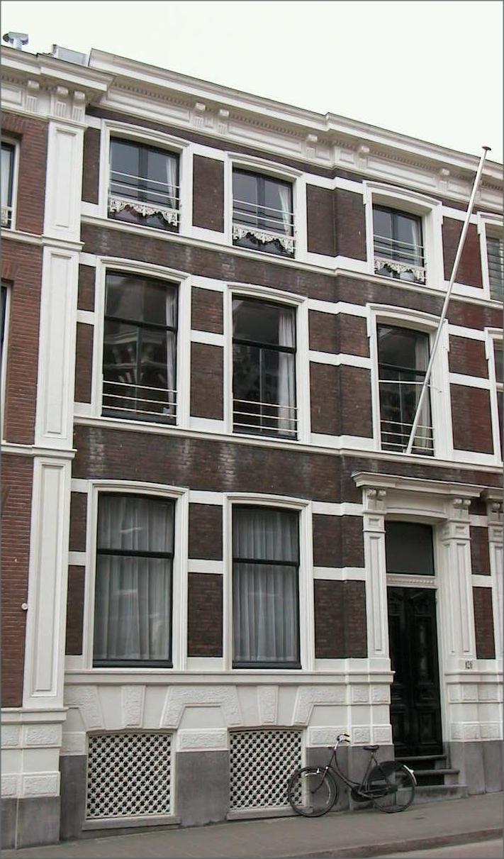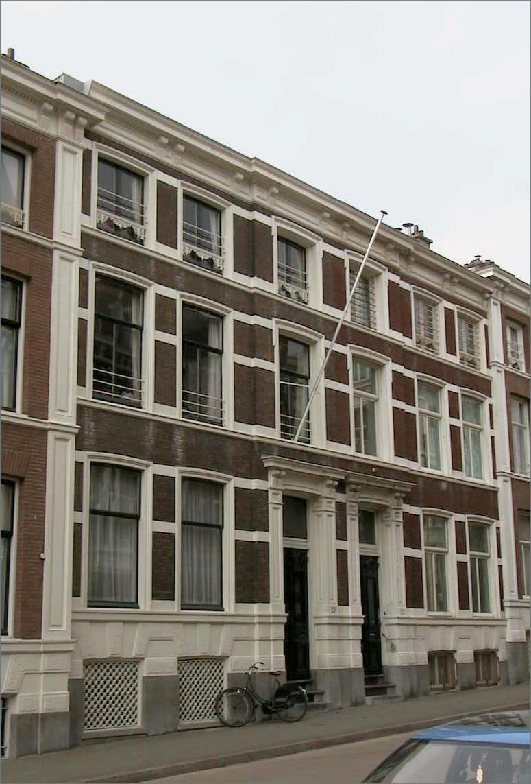 Herenhuis op rechthoekige plattegrond, bestaande uit een souterrain en drie bouwlagen onder een plat dak. De bouwlagen worden van elkaar gescheiden door geprofileerde, gepleisterde cordonlijsten. De bakstenen lijstgevel bezit een hardstenen plint en gepleisterde banden. Het souterrain is voorzien van een geblokte bepleistering met rustica-effect. De gevel is drie vensterassen breed, waarvan de rechter als risaliet is behandeld.