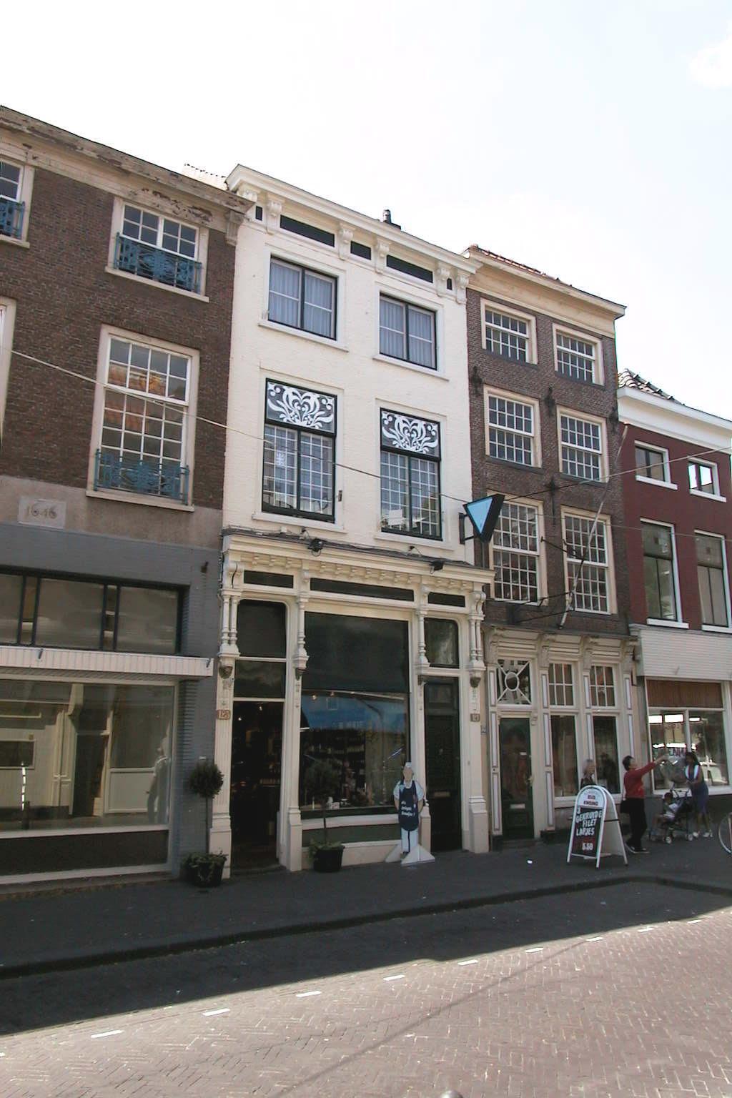 18de-eeuws pand van twee vensterassen, bestaande uit parterre en twee verdiepingen. Onder de houten kroonlijst zes paarsgewijs geplaatste consoles in Lodewijk XIV stijl. Rijk versierde, houten winkelpui uit het derde kwart van de l9de eeuw, waarin rechts een deur met panelen.