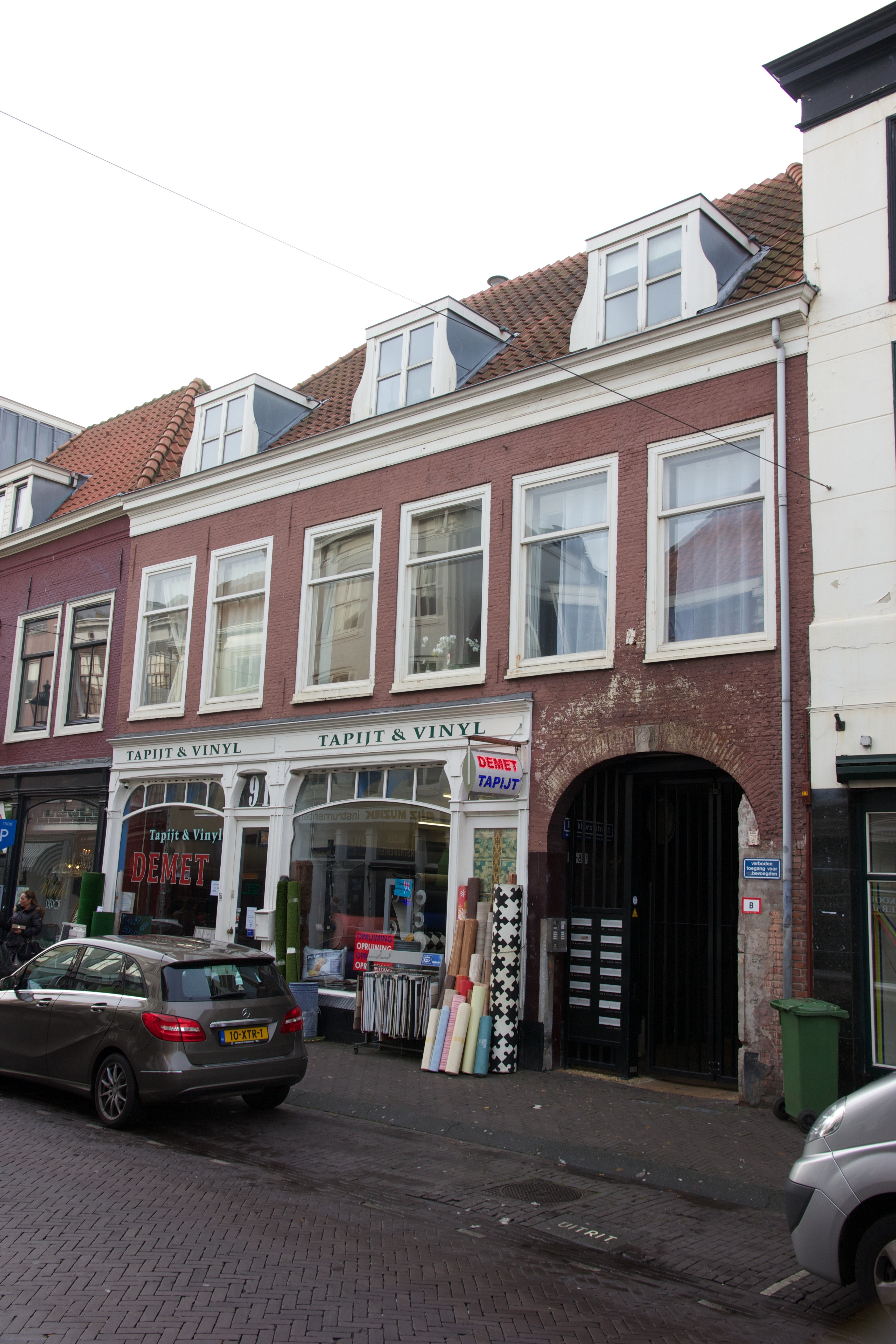17de-eeuws pand dat onder een fors dwars schilddak ligt met nr. 91 en bestaat uit een parterre en een verdieping. Gepleisterde lijstgevel van l9de eeuws karakter met links een aangetaste winkelpui. Rechts een getoogde poort met in de sluitsteen het jaartal 1644.