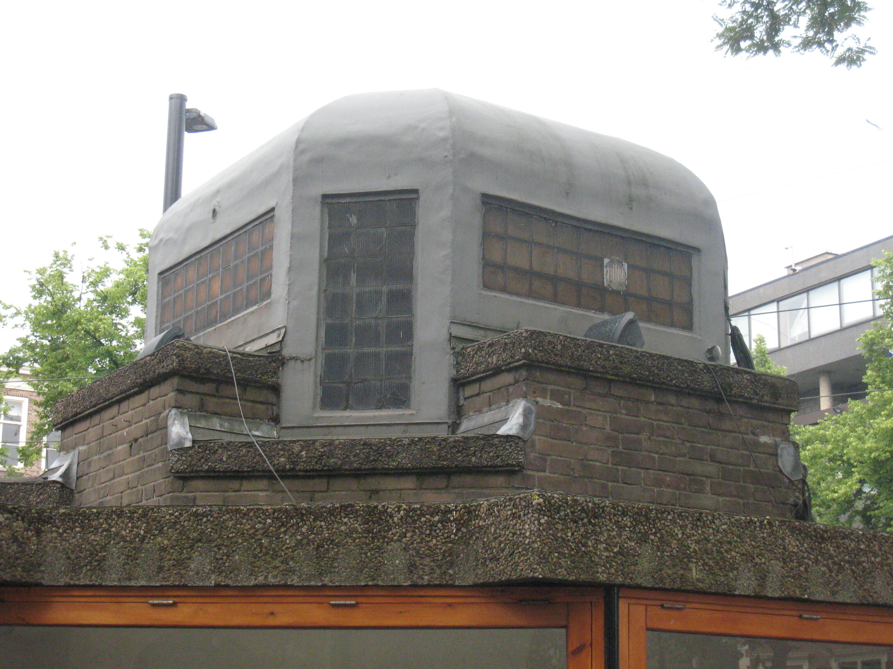 Vrijstaande kiosk, gebouwd in 1924-1925 in kubistisch-expressionistische trant naar ontwerp van H.P. Berlage in samenwerking met Piet Zwart. De kiosk maakt deel uit van het door genoemde architecten ontworpen totale herinrichtingsplan van het Buitenhof en de weg langs de Gevangenpoort. De kiosk had in oorsprong de functie van verkooppunt voor bloemen en tijdschriften, terwijl er onder een openbaar damestoilet was ingericht. De kiosk van een bouwlaag opgetrokken in beton en gele baksteen bestaat in plattegrond uit een kleine en een grote achthoek, die in elkaar zijn geschoven en door een ver uitstekend luifeldak van beton worden overdekt. De kleine achthoek wordt bekroond door een vierkant torentje met afgeschuinde hoeken, bestaande uit baksteen en glazen bouwstenen en gedekt door een betonnen koepeldak. Het betonnen luifeldak diende oorspronkelijk mede als platform voor bloemen en planten. Waardering.