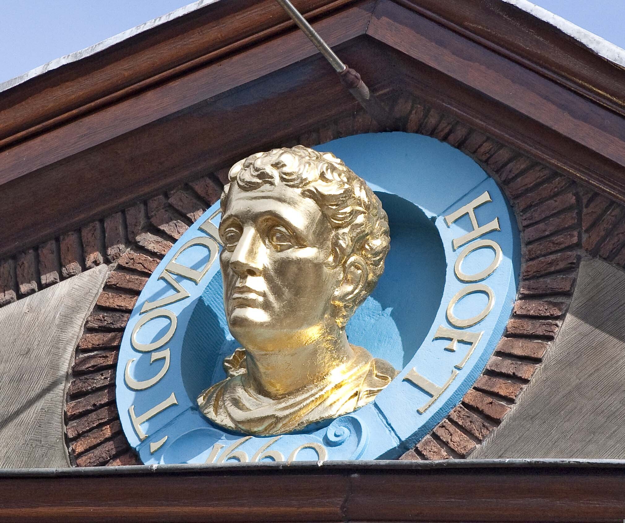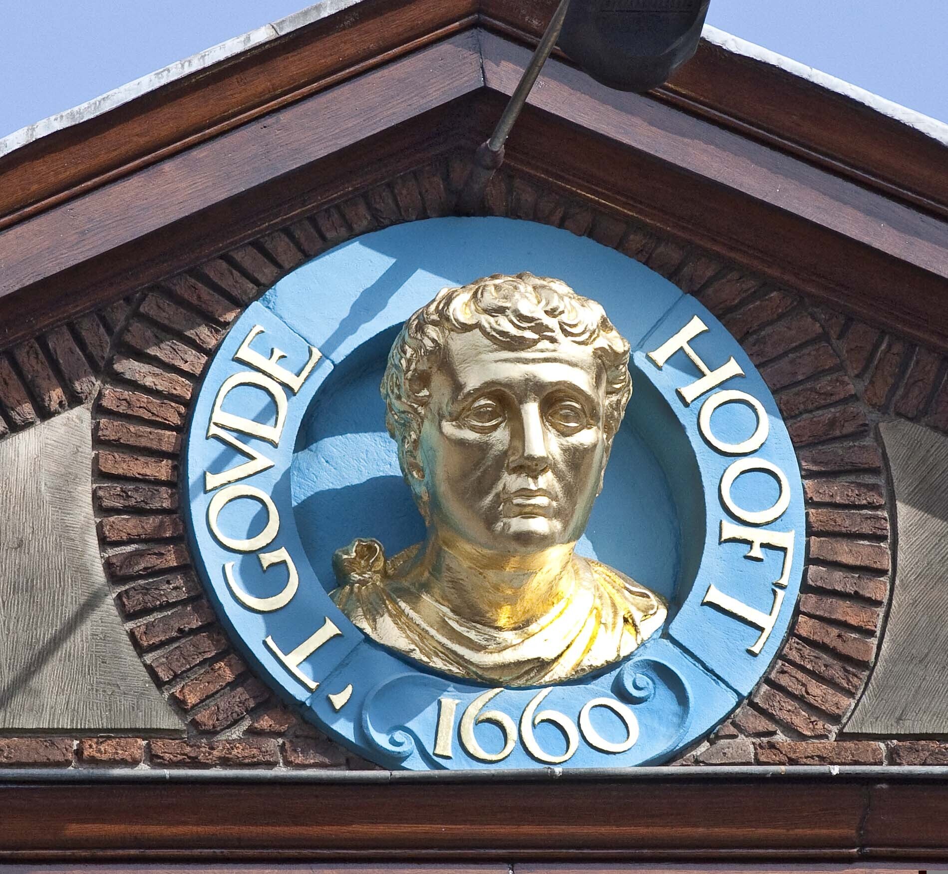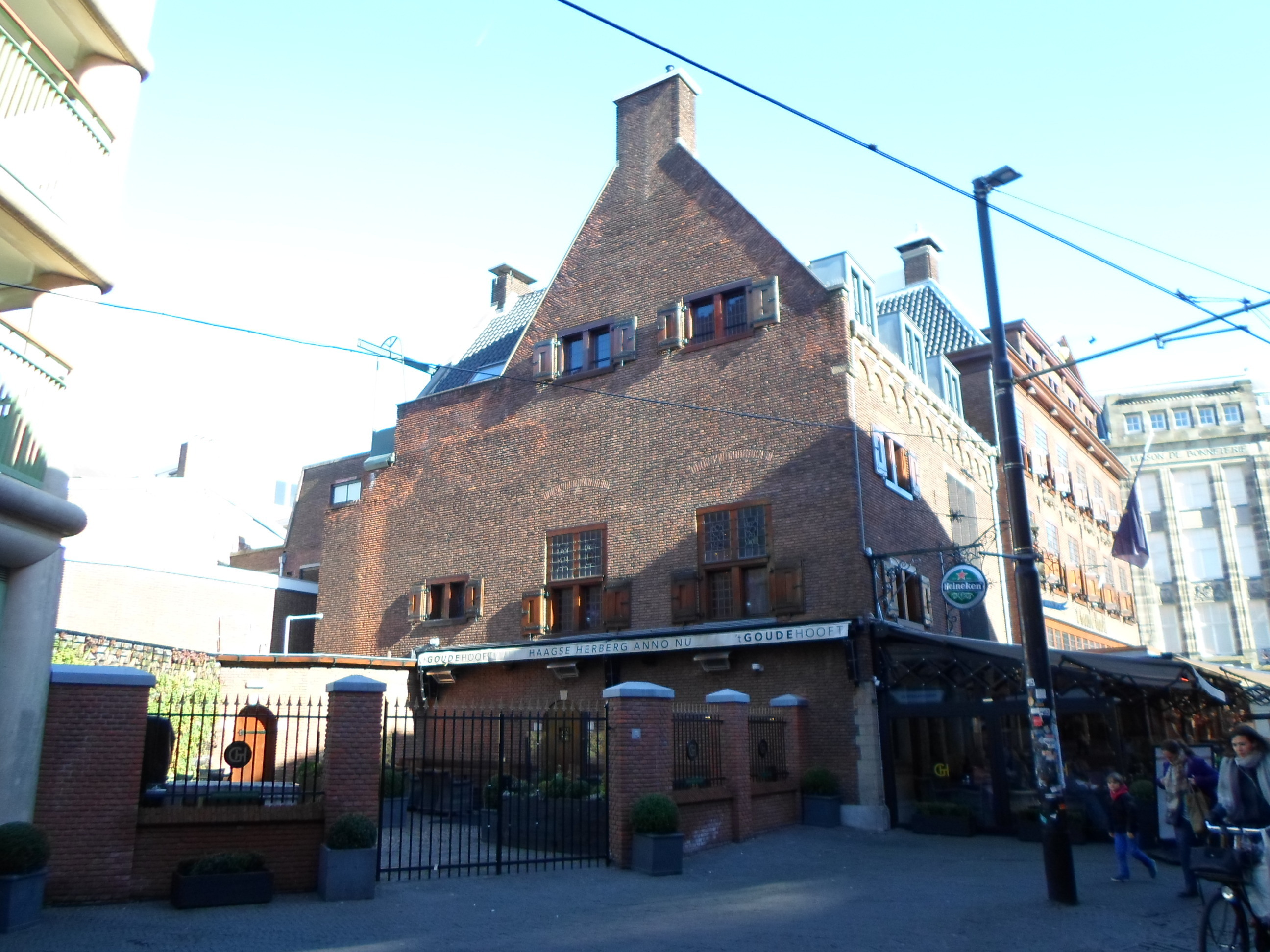Restaurant "Het Goude Hooft" uit 1938 gebouwd naar ontwerp van architect F.A. Warners in de historiserende trant van de Delftse School. Het is een vergrote en enigszins aangepaste kopie van de herberg "Het Goude Hooft" die op deze plaats in 1660 werd gebouwd naar ontwerp van Pieter Post. Het pand markeert de hoek van de Grote Halstraat en de Hoogstraat. Omschrijving.