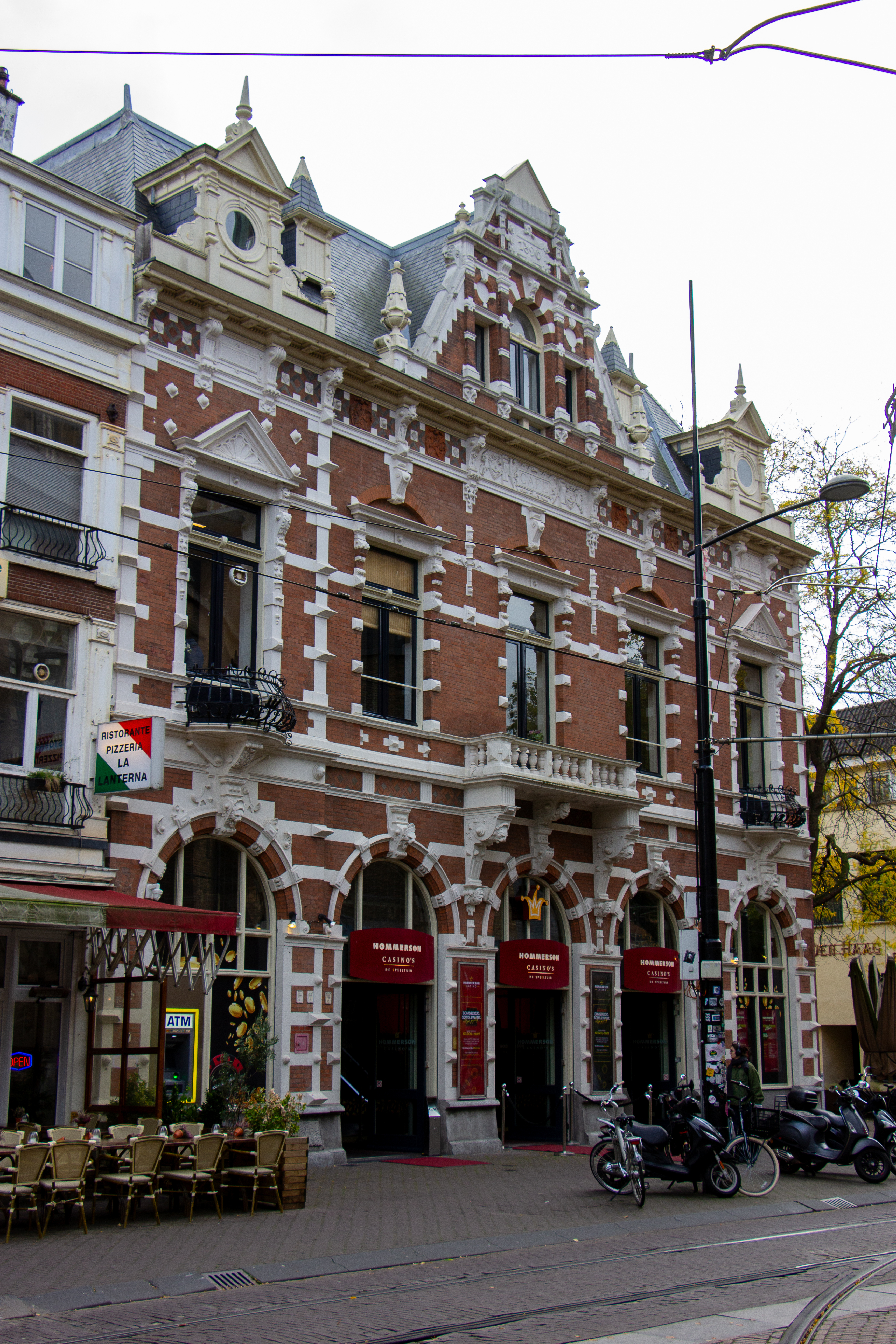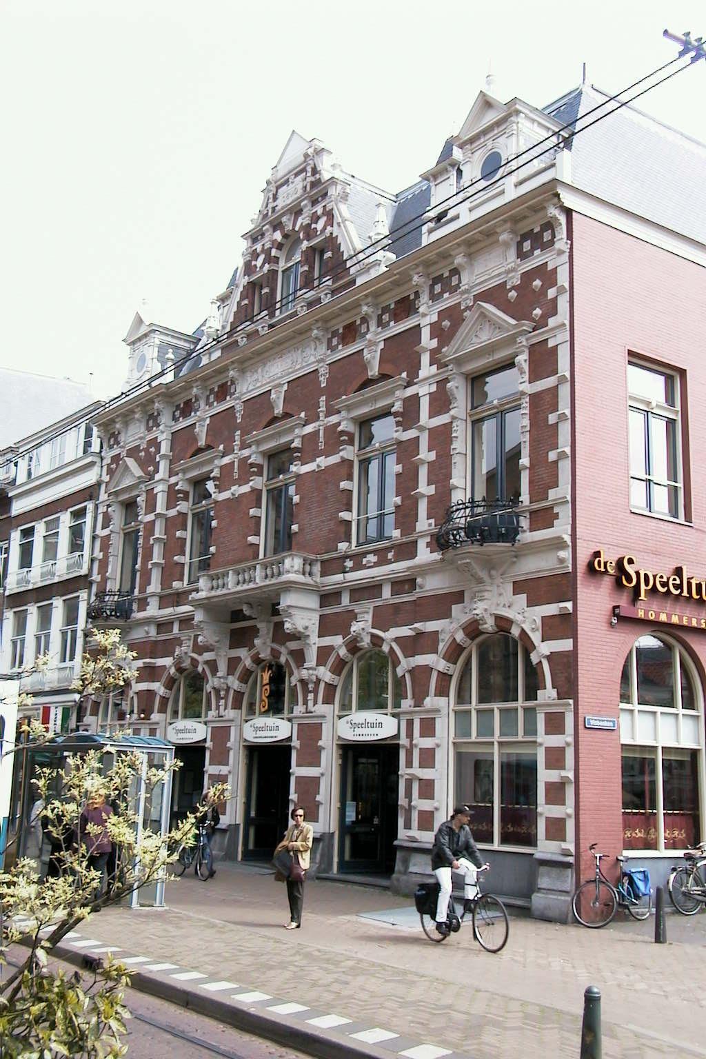 Na afbraak van het belendende perceel thans tot hoekpand geworden. Rijk gedetailleerde voorgevel in neorenaissancestijl, naar ontwerp van Joh. Mutters, gedateerd 1890. Breedte vijf vensterassen; parterre en verdieping. Achter de gevel een modern gebouw. De gevel heeft een middenpartij met puntgevel, geflankeerd door obelisken. Boven de zijgedeelten houten opzetstukken. De gevel vertoont verder een reeks getoogde openingen in de parterre, een fries met terracotta reliefs en vlechtwerk onder de kroon- lijst, geblokte vensteromlijstingen, afwisselend frontons en hoofdgestellen boven de vensters van de verdieping en balkons op gebeeldhouwde consoles.