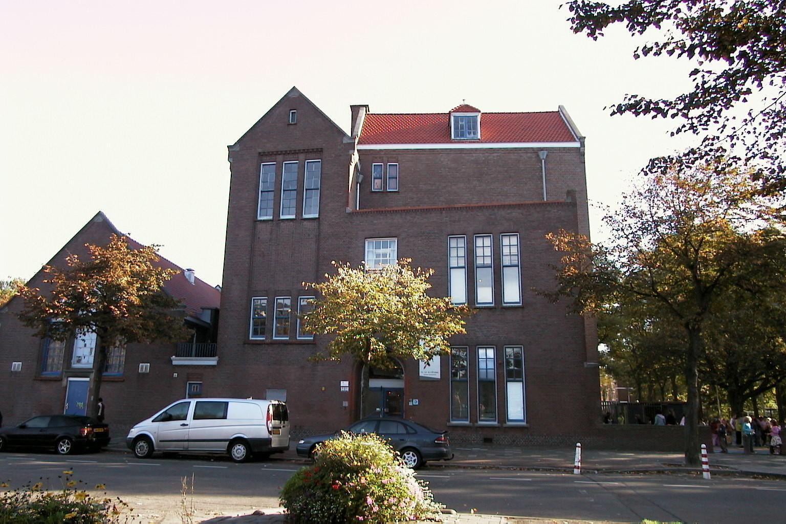 Burgerschool, opgeleverd in 1917 naar een ontwerp uit 1915 van de architect A. Schadee (1862-1937) werkzaam bij de toenmalige Dienst Gemeentewerken. De aannemer was G.F.G. van Eykelen uit de Fultonstraat 119 te Den Haag. Het schoolgebouw is gelegen aan De la Reyweg tussen de Heilbronstraat en Natalstraat.