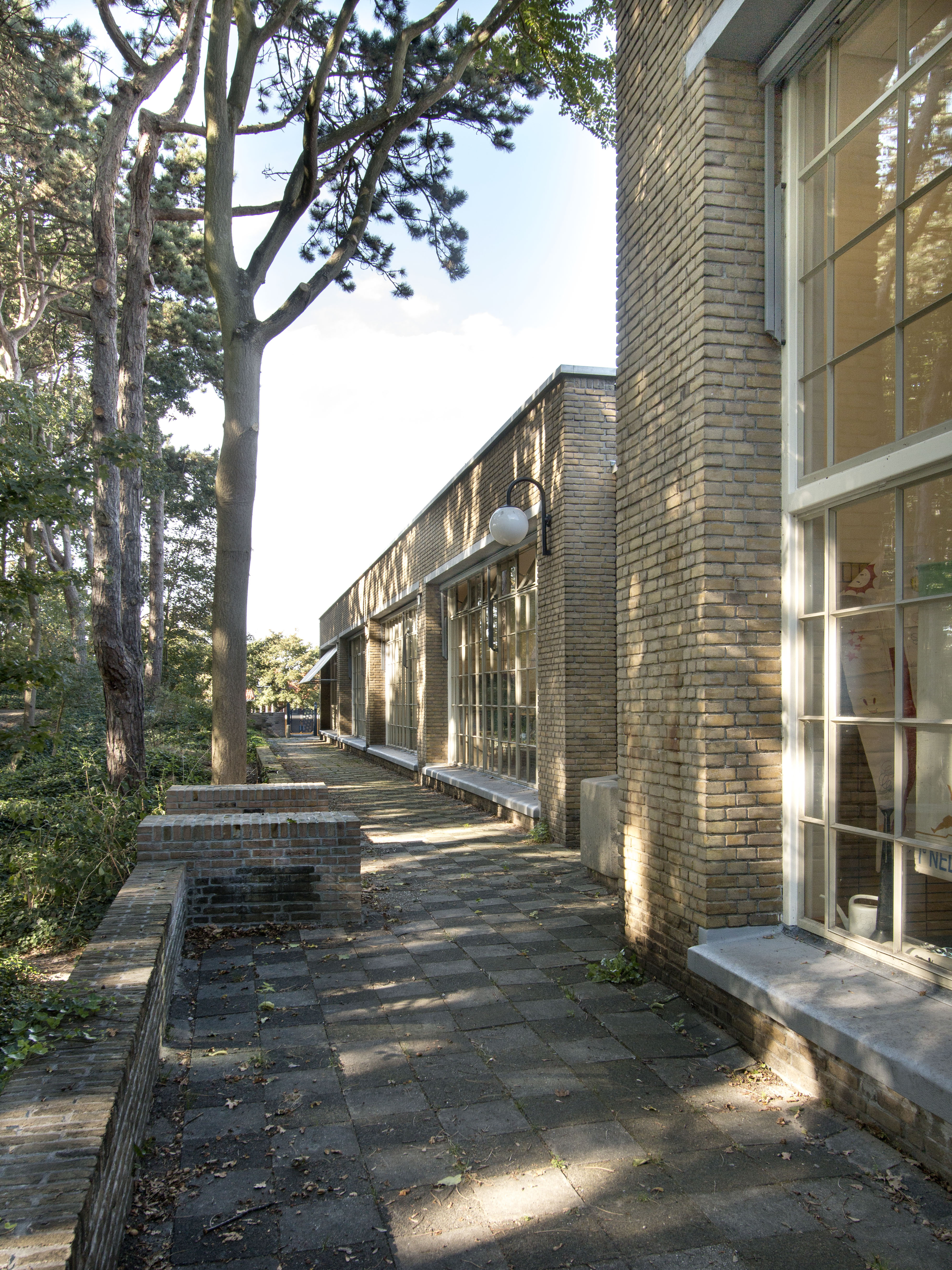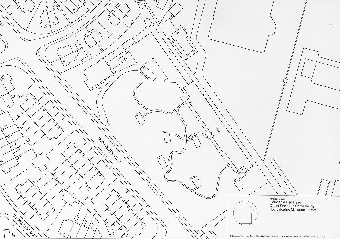 Het complex aan de Doorniksestraat bestaat uit een sterk geaccidenteerd duinterrein waarin zes open duinklassen zijn gesitueerd. Deze aanleg, naar ontwerp van J.J. Gort dateert uit 1913. In de oorspronkelijke opzet was sprake van een aantal verplaatsbare houten gebouwen, een echt schoolgebouw ontbrak. In de jaren twintig van de vorige eeuw werd besloten de houten opstallen te vervangen door een nieuw schoolgebouw. De hoofdarchitect van de Dienst Gemeentewerken A. Pet maakte hiervoor het ontwerp. In 1933 was het gebouw gereed. Dit in gele baksteen opgetrokken schoolgebouw op langgerekte plattegrond is gelegen aan de noordzijde van het complex. Het kenmerkt zich door een eenvoudige, sobere vormgeving in de stijl van de Nieuwe Haagse School. De architectuur doet sterk denken aan het in diezelfde tijd gebouwde gemeentemuseum van H.P. Berlage. De school bestaat uit een entree, de vroegere kamers van de hoofdmeester en arts alsmede een gang waarlangs vier leslokalen en een gymzaal zijn gesitueerd. Opvallend zijn de in staal uitgevoerde glaspuien in de hoge en lichte lokalen. De puien bezitten grote draaideuren waardoor op eenvoudige wijze over een lage borstwering vanuit het klaslokaal het duin bereikt kan worden. De gang is afgewerkt met geglazuurde tegels en heeft een aantal glas-in-lood ramen met afbeeldingen van planten en dieren. In de buitengevel is een natuurstenen reliëf opgenomen, voorstellende een bijenkorf omgeven door bloemen en de zon. De oorspronkelijke opzet van een openlucht school komt ook tot uitdrukking in de bij de school mee ontworpen L-vormige lighal, die aan de noordzijde tegen de school is aangebouwd. Circa 1955 is aan de noordzijde aansluitend op de lighal een tweetal lokalen toegevoegd en in de jaren zeventig van de vorige eeuw nogmaals twee lokalen en een keuken.