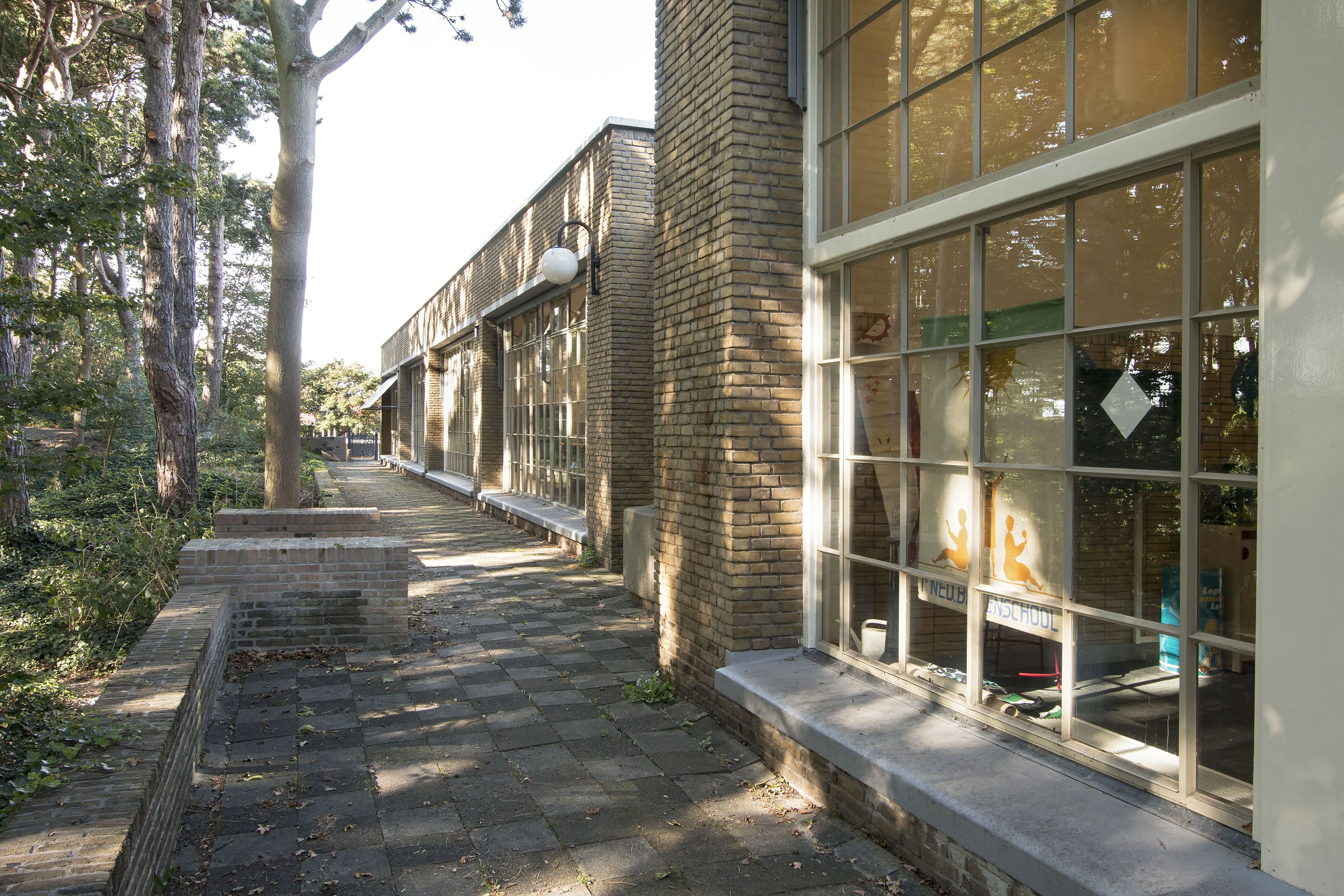 Eerste Nederlandse Buitenschool bestaande uit een in 1913 aangelegd duinterrein naar ontwerp van J.J. Gort en een in de stijl van de Nieuwe Haagse School opgetrokken schoolgebouw en lighal naar ontwerp van A. Pet uit 1933.