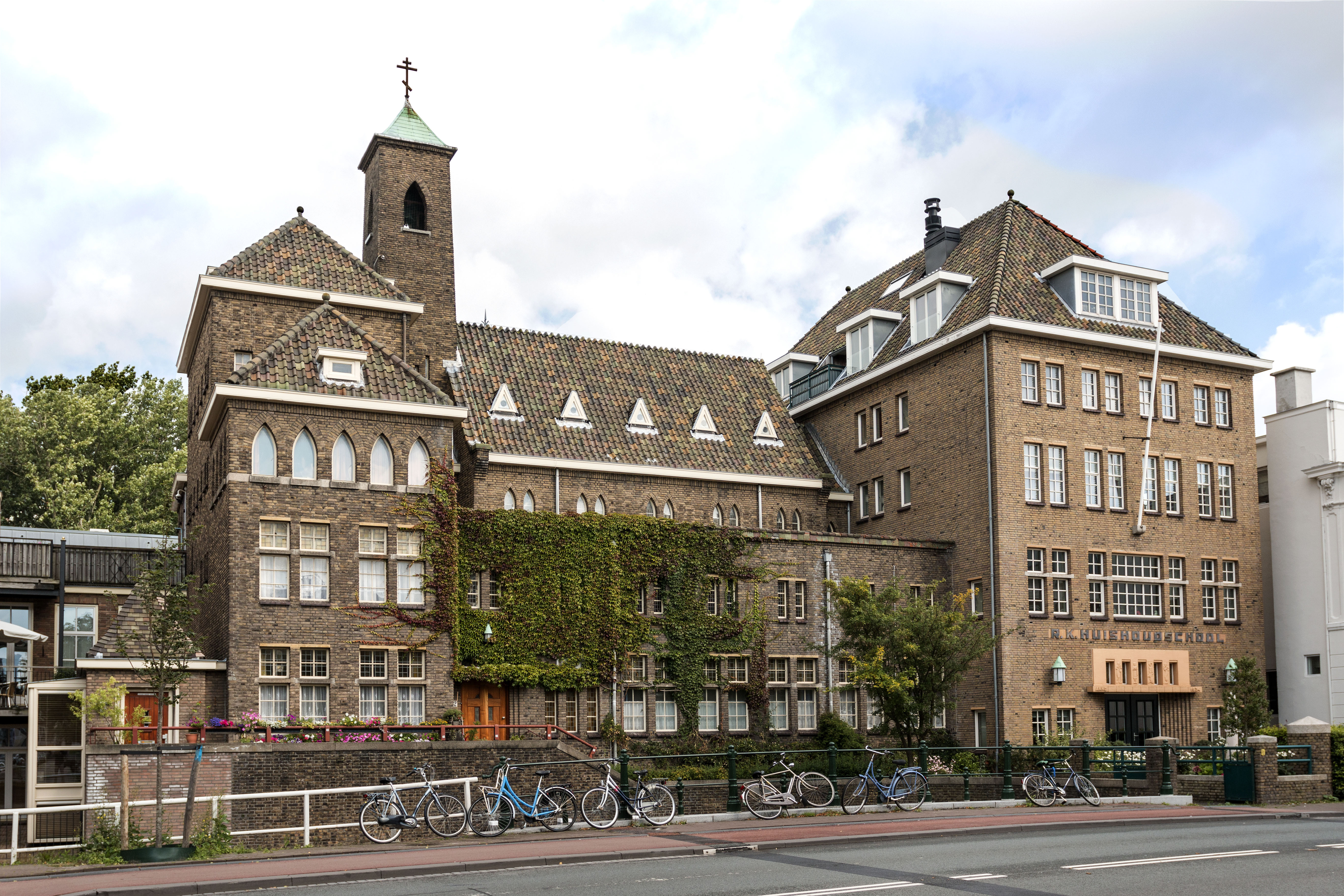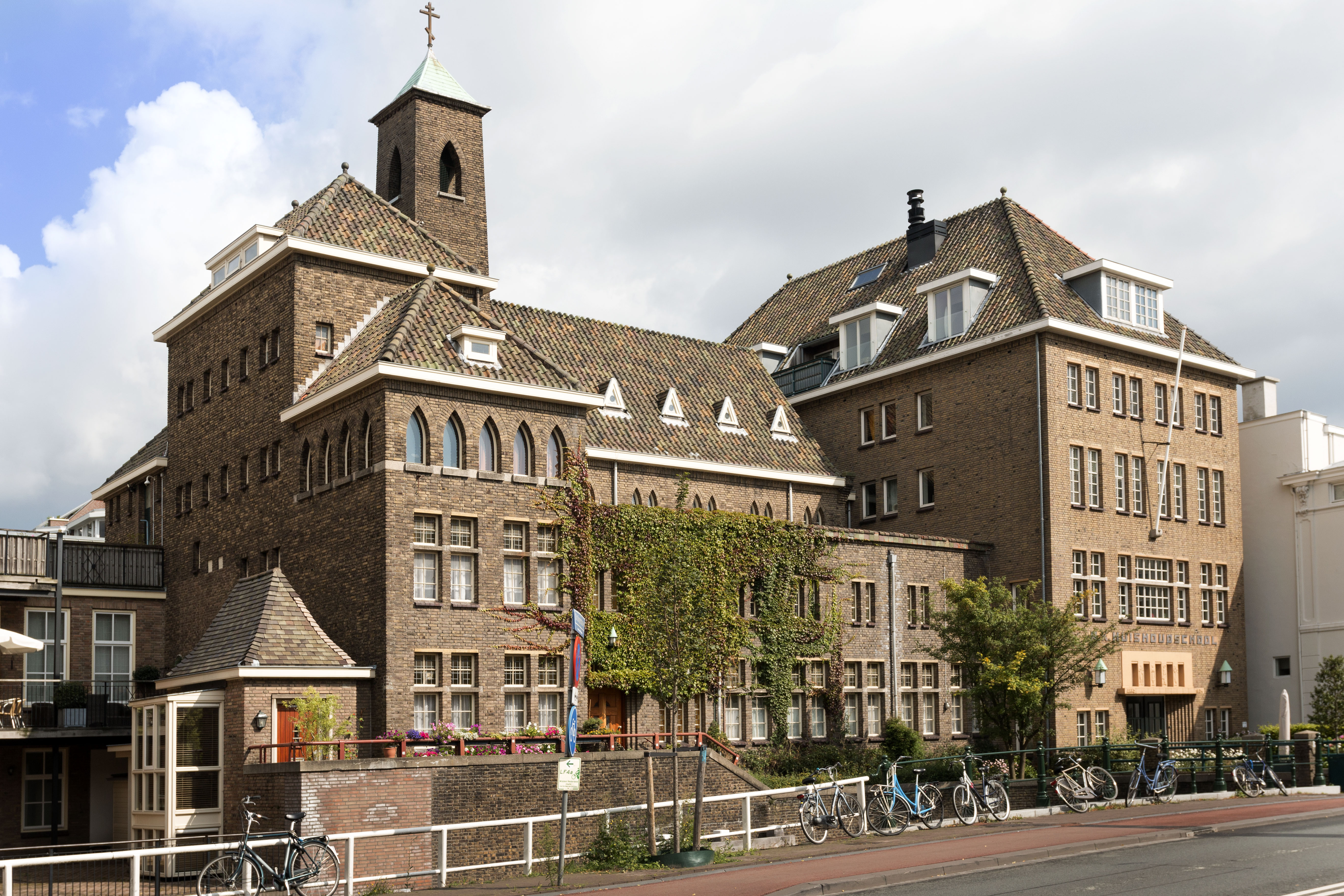 Voormalige R.K. Huishoudschool met kapel, internaat en nonnenklooster uit 1935 in door de Delftse School beïnvloede historiserende vormgeving van architect Jan Mol. Het gebouwencomplex op onregelmatige plattegrond bezit meerdere bouwvolumen van verschillende hoogten. De oorspronkelijke leslokalen en administratieve ruimten zijn in L-vorm gegroepeerd. Tegen de binnenzijde van een van de poten bevindt zich de vm. kloosterhof met arcadestelling waarlangs de ruimten zijn gegroepeerd van het vroegere internaat. De school is vanaf de Dr. Kuyperstraat bereikbaar via een brug over het water. De kademuur ter hoogte van het complex en bakstenen tuinmuur langs de Dr. Kuyperstraat met ijzeren hekwerk zijn onderdeel van het totale ontwerp.