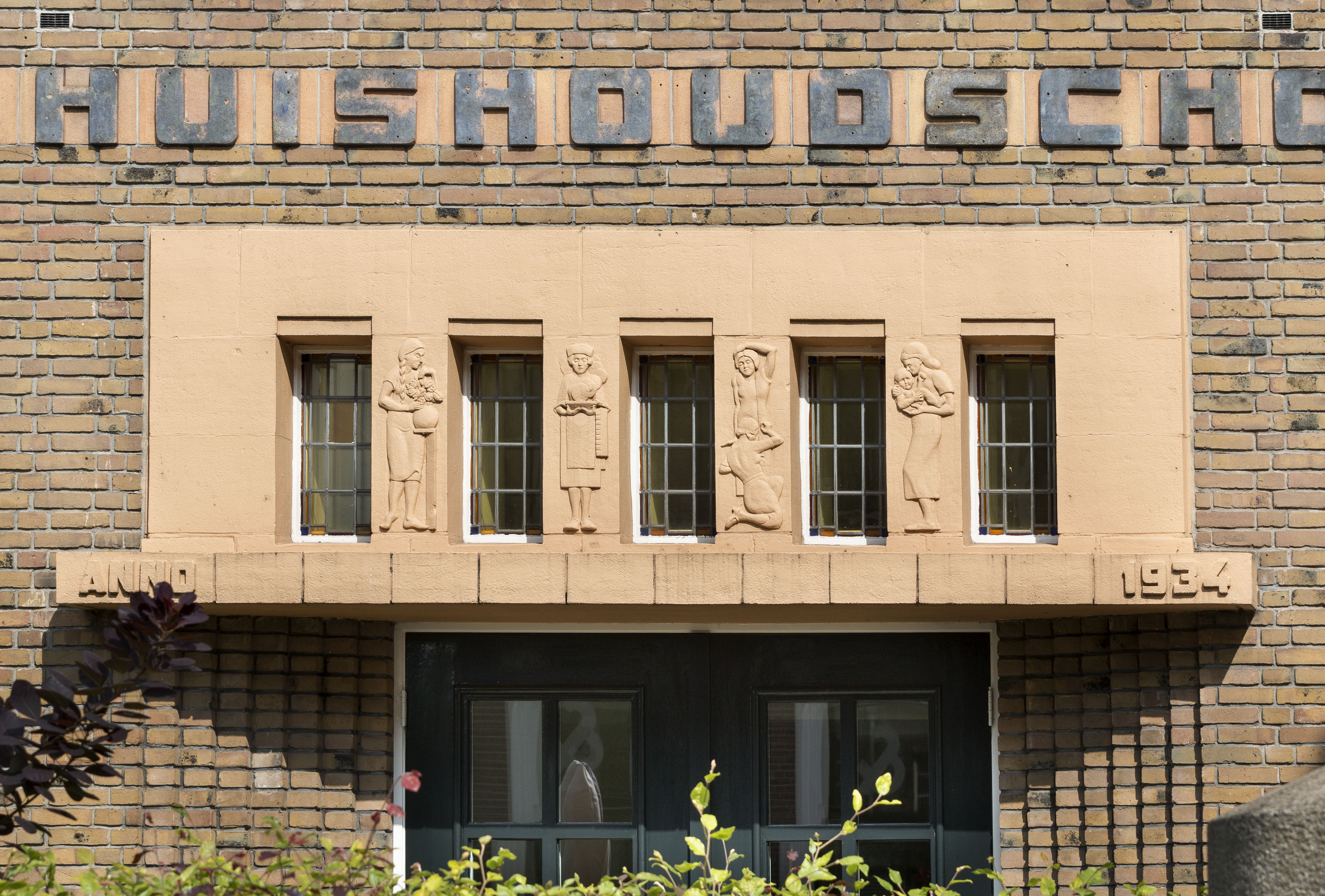 godsdienstige, degelijke en ontwikkelde vrouwen, die in staat zijn zelfstandig een huishouden te besturen’. De school startte met twintig leerlingen in een groot zeventiende-eeuws herenhuis aan het Westeinde. De school bood verschillende opleidingen: lerares voor het huishoudonderwijs en huishoudkundigen, dagschool voor meisjes na de lagere school en avondcursussen in ‘wasschen, koken en strijken’. Er was veel belangstelling, en in de jaren dertig was het aantal leerlingen tot over de 800 gegroeid. Het herenhuis werd te klein en het kerkbestuur beraadde zich over nieuwbouw. Het besloot de verantwoordelijkheid voor de bouw over te dragen aan de pas opgerichte R.K. Vereeniging ter bevordering van het Nijverheidsonderwijs te