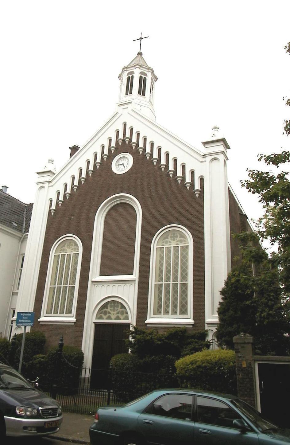 Vrijgelegen kerk uit 1868 in eclectische/ neo-romaanse stijl naar ontwerp van C.W. van Capellen, uitgevoerd door de aannemer G. Klomp voor de Katholiek Apostolische Gemeente. De kerk ligt achter de rooilijn en wordt door een smeedijzeren hek met gietijzeren staanders van de straat gescheiden. Achter het hek is een voorerf.