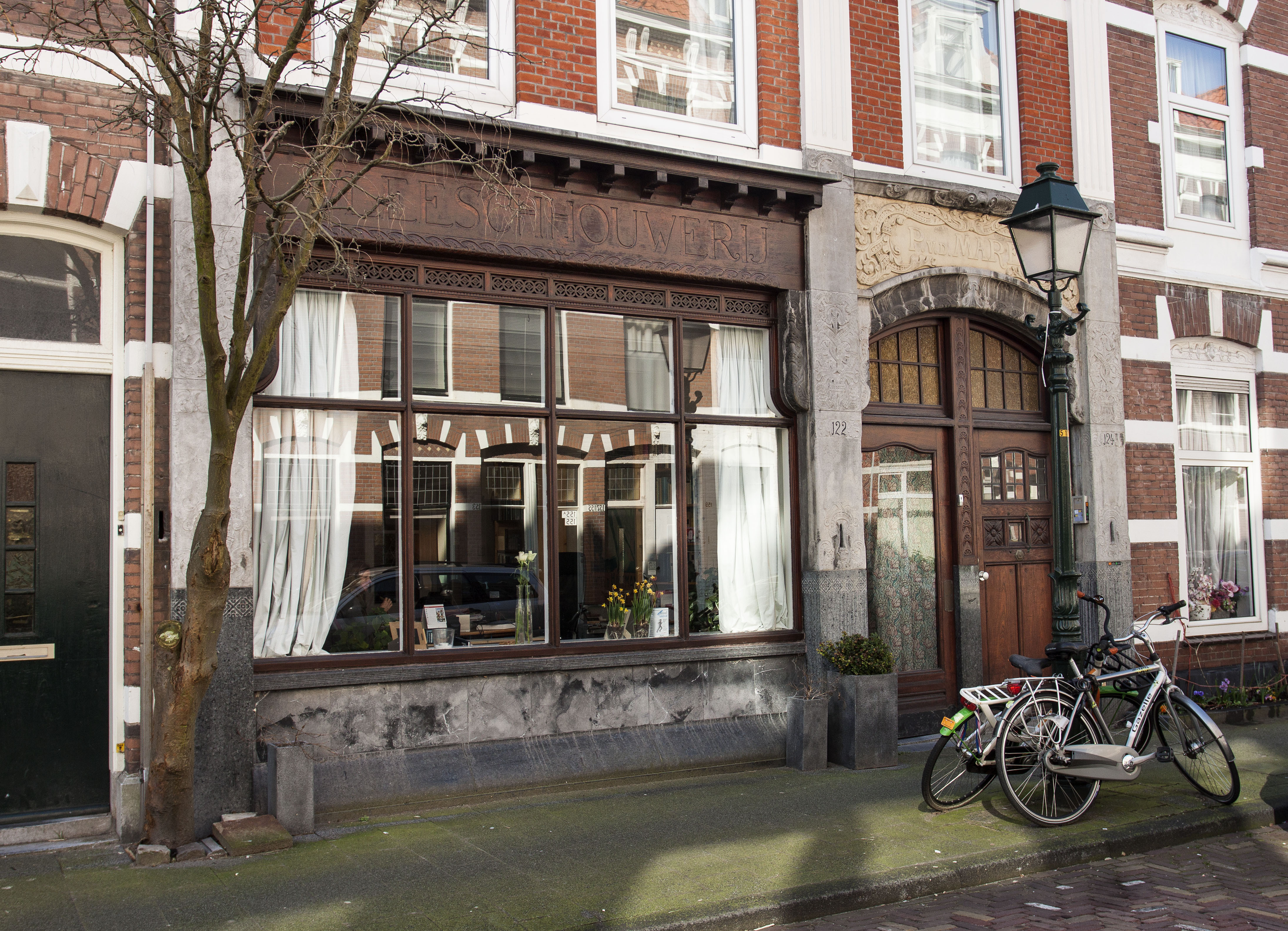 Bijzonder is dat in het pand Weimarstraat 32 ook een winkelpui voor een slagerij is opgenomen, die vrijwel identiek is aan de pui in de Franklinstraat. Ook deze is ontworpen door architect M.F. van der Gugten in 1919.