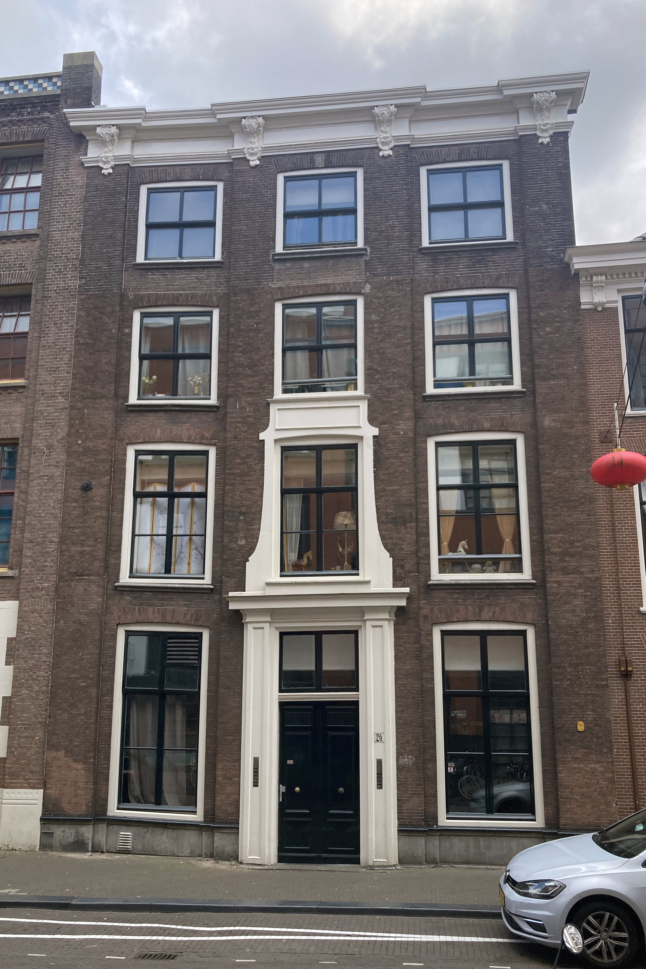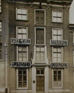 FORS PAND uit de tweede helft van de 18e eeuw (bovenverdieping later toegevoegd), kroonlijst op gesneden consoles, naar voren springende en sober versierde middenpartij.
