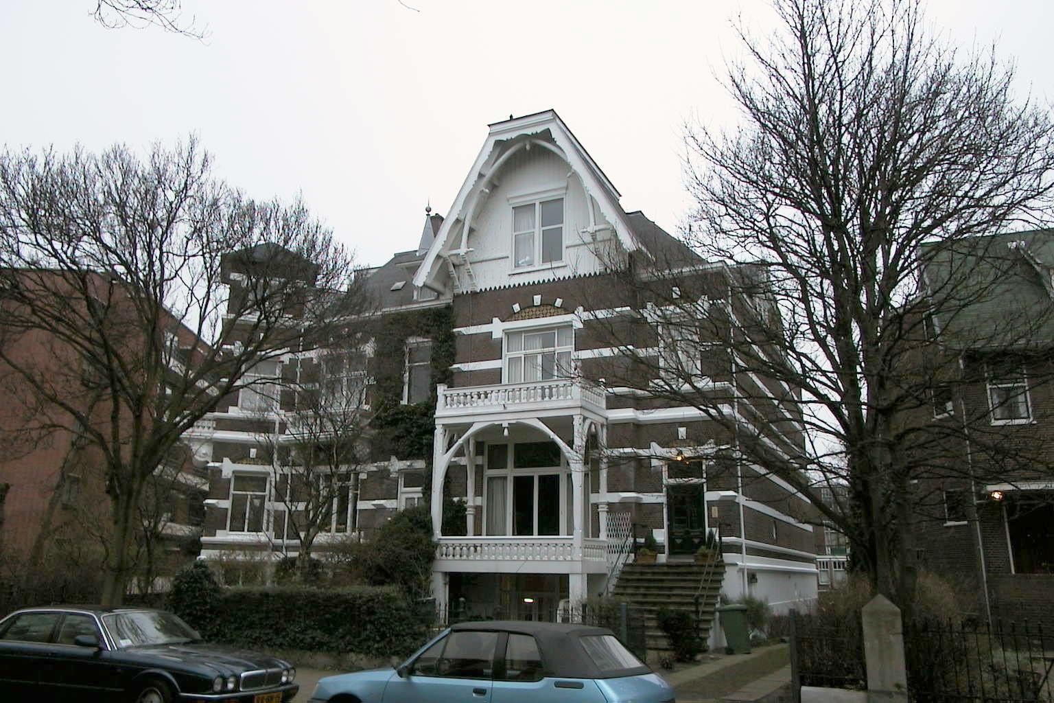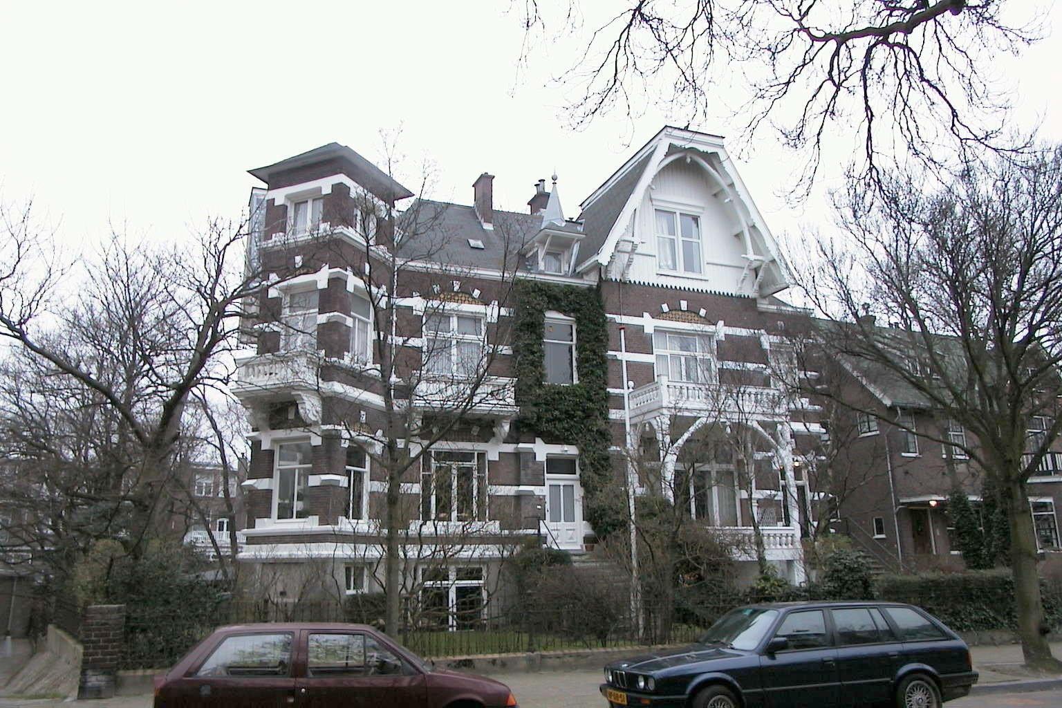 Villa op rechthoekige plattegrond, bestaande uit souterrain en twee bouwlagen onder een met shingles gedekte samengestelde kap. Het souterrain is gepleisterd; voor het overige zijn de gevels van baksteen met witte speklagen en gepleisterde cordonlijsten tussen de bouwlagen. De linkeras van de voorgevel is als risaliet behandeld en wordt beëindigd door een forse steekkap met gesnedendaklijst in chaletstijl. De geveltop is voorzien van houten briefpanelen. Tegen de eerste bouwlaag is een veranda op gepleisterde pijlers gesitueerd, voorzien van een houten balustrade. Het balkon hierboven, eveneens met houten balustrade, rust op houten pijlers waartussen gebogen lijsten zijn aangebracht. Rechts van de veranda is de ingang - een paneeldeur met diamantkoppen - gesitueerd, die bereikbaar is via een trap met hardstenen treden en een ijzeren leuning. Onder de veranda biedt een tweede trap toegang tot het souterrain. De vensters van uiteenlopende vormen worden bekroond door geblokte strekken en bezitten siermetselwerk in de boogvelden.