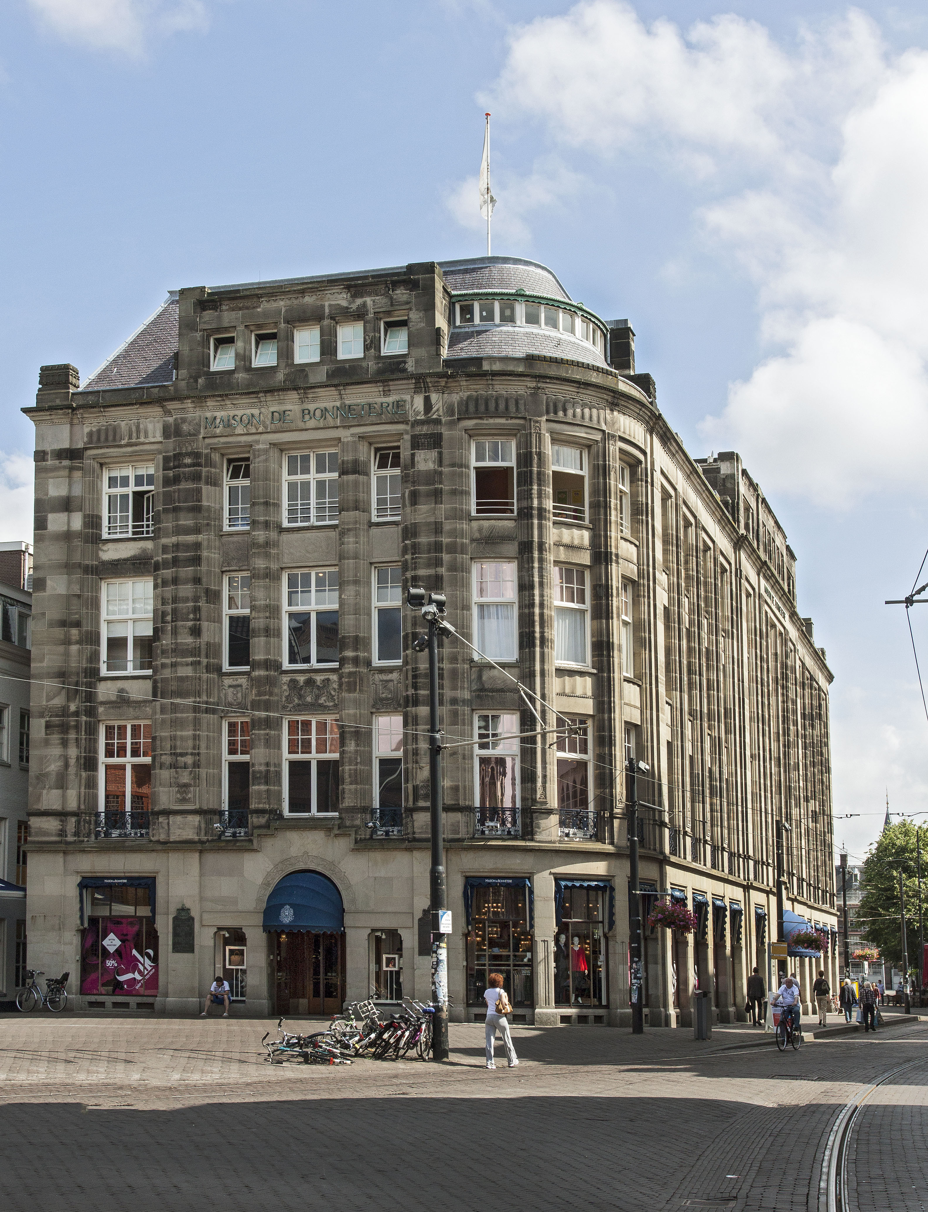 Vrijstaand warenhuis "Maison De Bonneterie" uit 1913 op rechthoekige plattegrond gebouwd in opdracht van J. Cohen uit Amsterdam in de stijl van de "Um Achtzehnhundert Bewegung". Het ontwerp van A. Jacot is in samenwerking met A.H. Zinsmeister, J.L.Crouwel en G.F.la Croix gerealiseerd.