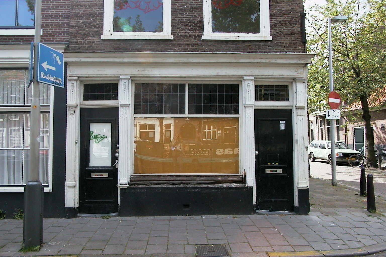 Tegen de achtergevel een smalle, uitgebouwde kamer onder plat dak. De voorgevel bezit een houten hoofdgestel en geprofileerde houten vensteromlijstingen, 19de eeuws. De driedelige houten onderpui met een deur aan weerszijden van het brede middenraam dateert uit het derde kwart van de 19de eeuw.