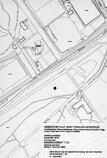 De kanonkazemat ligt in het Haagse Bos, dichtbij de Benoordenhoutseweg, ter hoogte van Oosterbeek. Het object ligt bovengronds en is aangeaard.