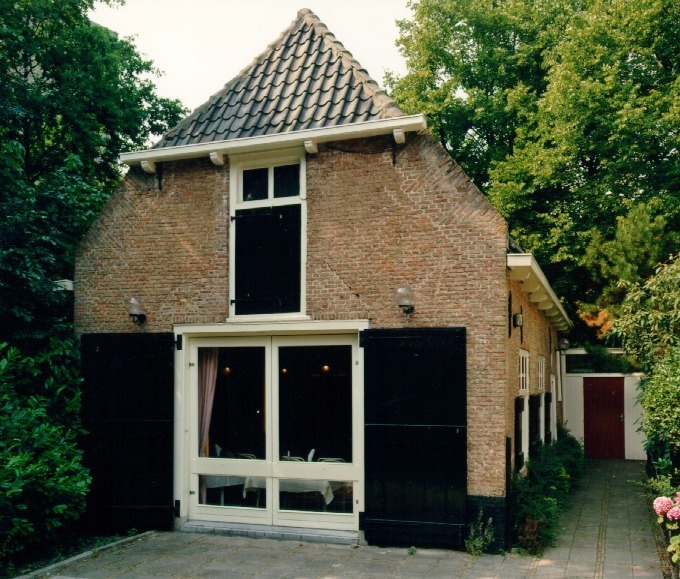 Aan de rand van de aanleg staat een 18de-eeuwse BOERDERIJ op langgerekte plattegrond. De op rechthoekige grondslag opgetrokken witgepleisterde (bakstenen) boerderij met zwarte plint bestaat uit één bouwlaag en een kapverdieping onder een met pannen gedekt zadeldak met topgevels; tegen kopse zijgevel (O) zijn twee aanbouwen onder zadeldakjes met overstek voorzien van geschulpte windveren. Na brand in 1967 is de boerderij sterk gerestaureerd waarbij kap en vensters zijn vernieuwd; inwendig is de scheidingsmuur evenals het niveauverschil van de zoldervloer tussen stal- en woondeel gehandhaafd; in het staldeel worden spanten en balken aan één zijde gedragen door een rij standvinken die in de lengte van de boerderij over verschillende vloerniveau's doorlopen. Regelmatig ingedeelde voorgevel.