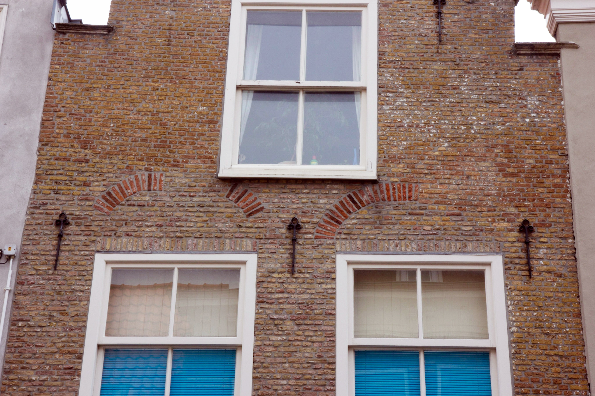 17de-eeuws pand ter breedte van twee vensterassen, bestaande uit parterre verdieping en zolderverdieping. Gesausde trapgevel met ontlastingsbogen boven de vensters, twee 17de-eeuwse sierankers en geprofileerde dekplaten op de trappen. Gevelbekroning in de vorm van een gebogen fronton. Vermoedelijk bouwjaar: 1647.