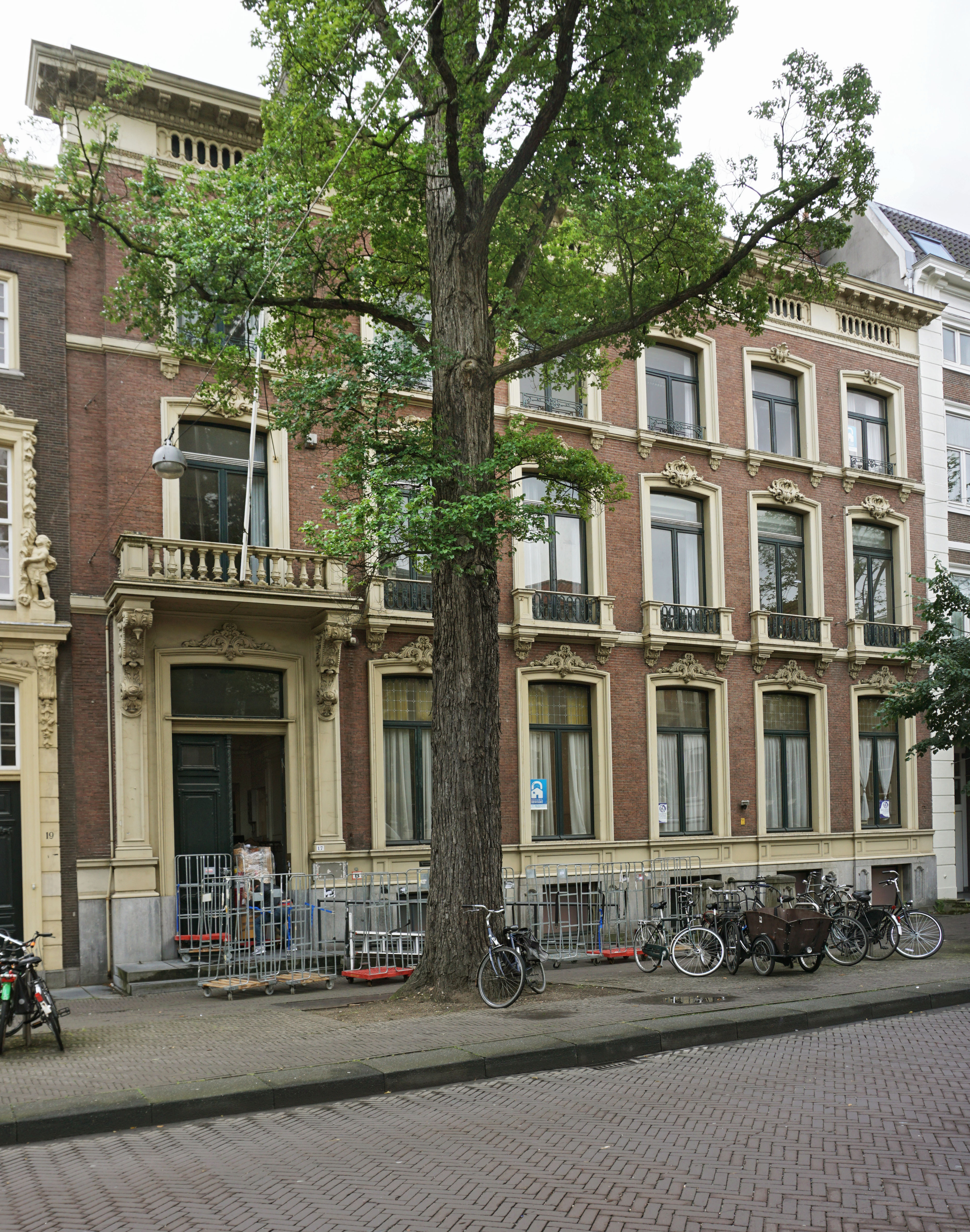 Monumentaal herenhuis, in oorsprong uit de 18de of eerste helft van de l9de eeuw, van een nieuwe voorgevel voorzien vermoedelijk enkele jaren voor 1870, toen Willem Cornelis Meurs eigenaar was. Pand, bestaande uit souterrain, belétage en twee verdiepingen met dwars schilddak. De breedte bedraagt zes vensterassen waarvan de linker als risaliet is behandeld en de ingang bevat. In het met hardsteen beklede souterrain bevindt zich de personeelsingang met panelendeur en zware, hardstenen stoeppalen. Voorts in het souterrain rechthoekige vensters, afgewisseld door panelen naar l8de-eeuwse trant. De vleugeldeur heeft panelen. Hierboven een balkon met balustrade op rijk versierde consoles. De vensters bezitten geprofileerde omlijstingen met stucwerkkuiven. De vensters van de beide verdiepingen staan op een doorlopende cordonlijst die onder de vensters naar voren springt en gedragen wordt door consoles. Het hoofdgestel van de gevel heeft in het fries gekoppelde lichtopeningen naar Lodewijk XVI trant en onder de kroonlijst een eierlijst en bladconsoles. In de vensters stolpramen. Het pand bezit rijke interieurs in eclectische trant.