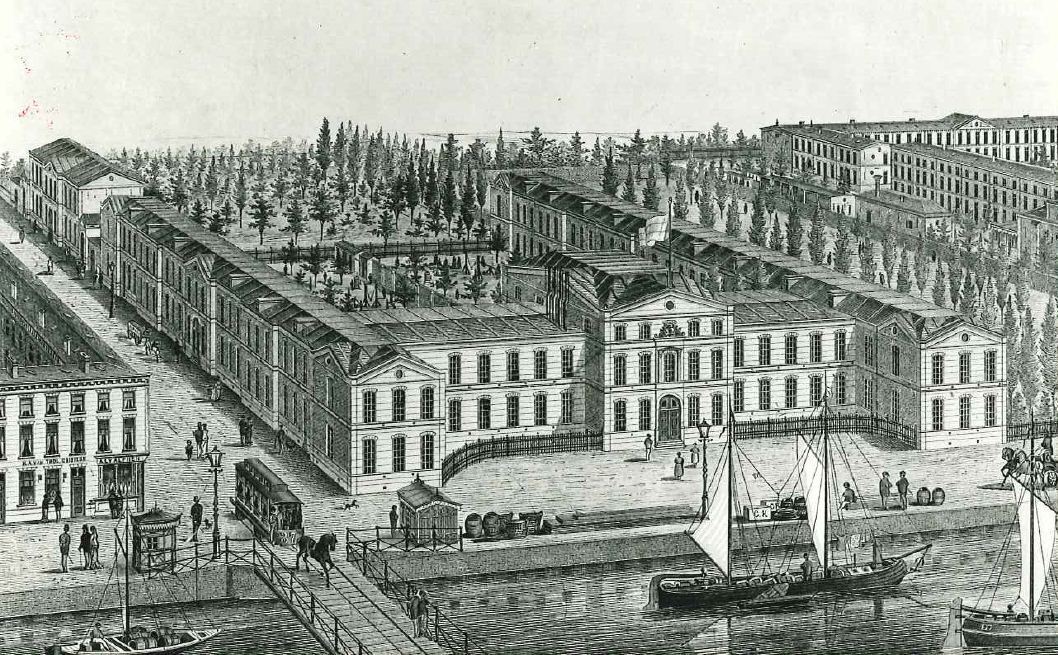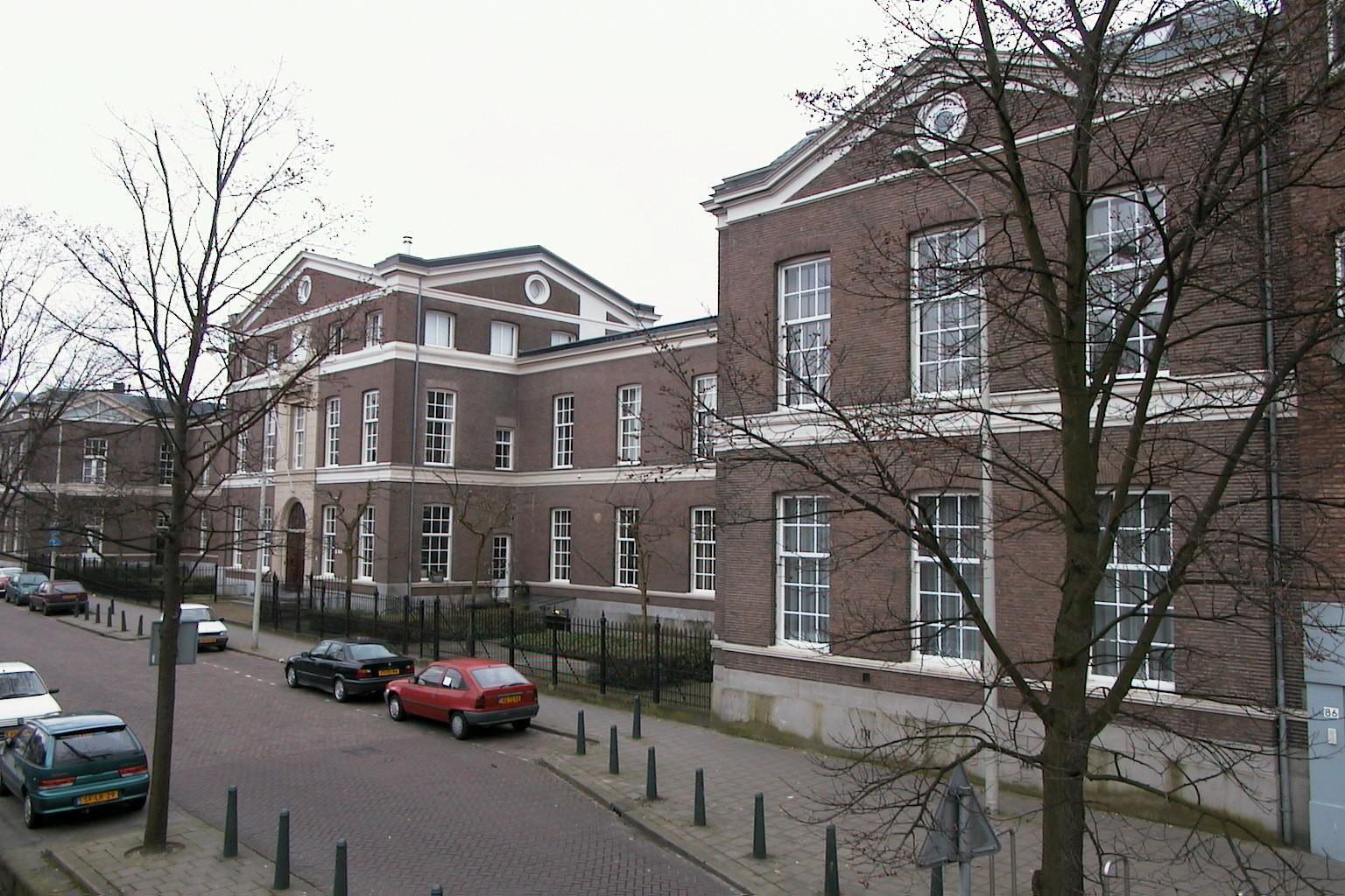 Voormalig weeshuis, bestaande uit drie vleugels op U-vormige plattegrond. Het gebouw telt twee bouwlagen, deels onder zinken kappen. De bouwlagen worden door een geprofileerde cordonlijst van elkaar gescheiden. De voorgevel is aan de Hooftskade gesitueerd. De vleugel langs de Koningstraat, oorspronkelijk van gelijke lengte als de tegenovergelegen vleugel, is in 1925-1926 aanmerkelijk ingekort. De voorgevel bezit een naar voren springend middenpaviljoen en twee eveneens naar voren springende zijpaviljoens die worden bekroond door deels bakstenen frontons met oculi. Het middenpaviljoen heeft een attiekverdieping. Het gebouw bezit een hardstenen plint en bakstenen gevels, met uitzondering van de gepleisterde middenas van het middenpaviljoen. Hierin bevindt zich de getoogde ingangspoort en daarboven een venster met fronton op consoles. De vensters zijn vijftienruitsschuifvensters. Van de gevel aan de kant van de Koningstraat zijn de beide uiteinden en het middendeel als risaliet uitgebouwd; de uiteinden worden bekroond door frontons, voorzien van glas. Het hoofdtrappehuis in het middenpaviljoen aan de Hooftskade bezit een dubbele bordestrap, tegelvloer en lambrizeringen van geglazuurde baksteen uit de bouwtijd. De vensters met glas-in-lood die de lichtinval vanaf de achterzijde verzorgen dateren van de verbouwing uit 1925-1926. Het terrein wordt aan de kant van de Hooftskade afgesloten door een gietijzeren hekwerk.