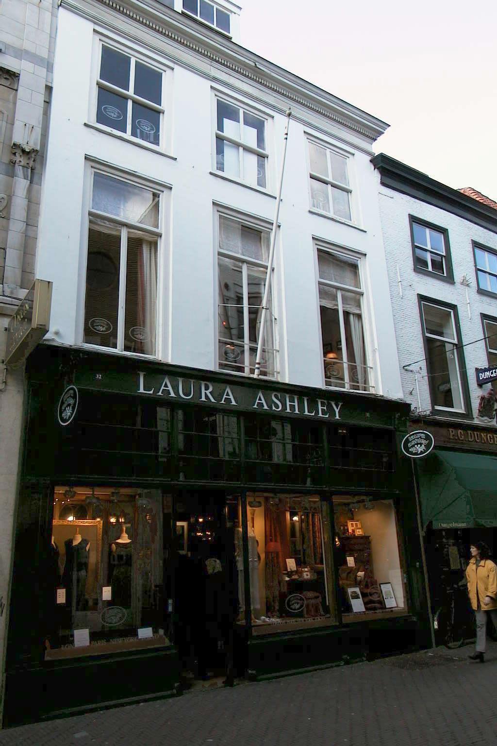 Achttiende eeuws pand met gepleisterde lijstgevel en harmonische winkelpui uit ca. 1911. Zeventiende eeuwse (of mogelijk oudere) kelders met gepleisterde ton- en graatgewelven.