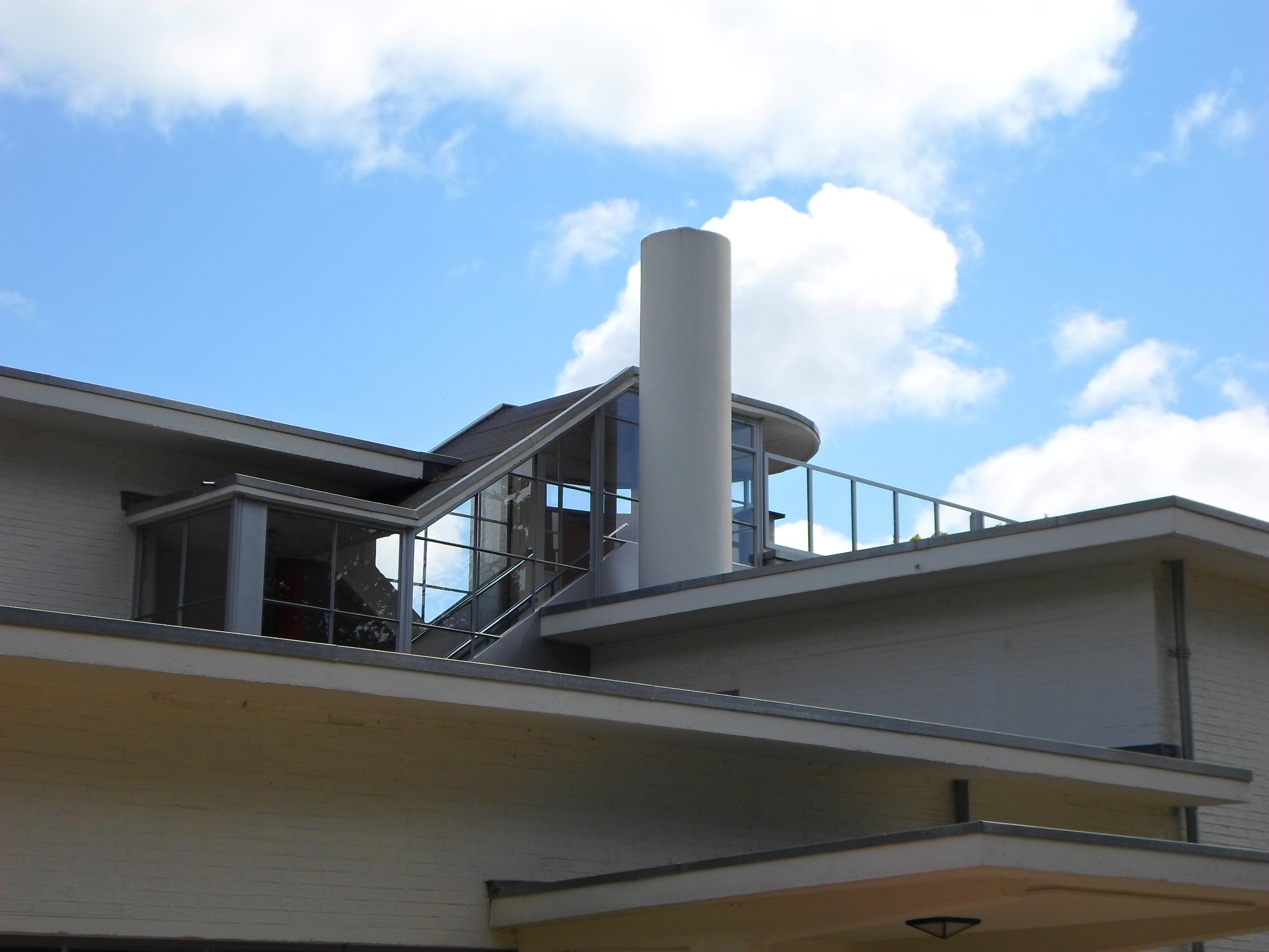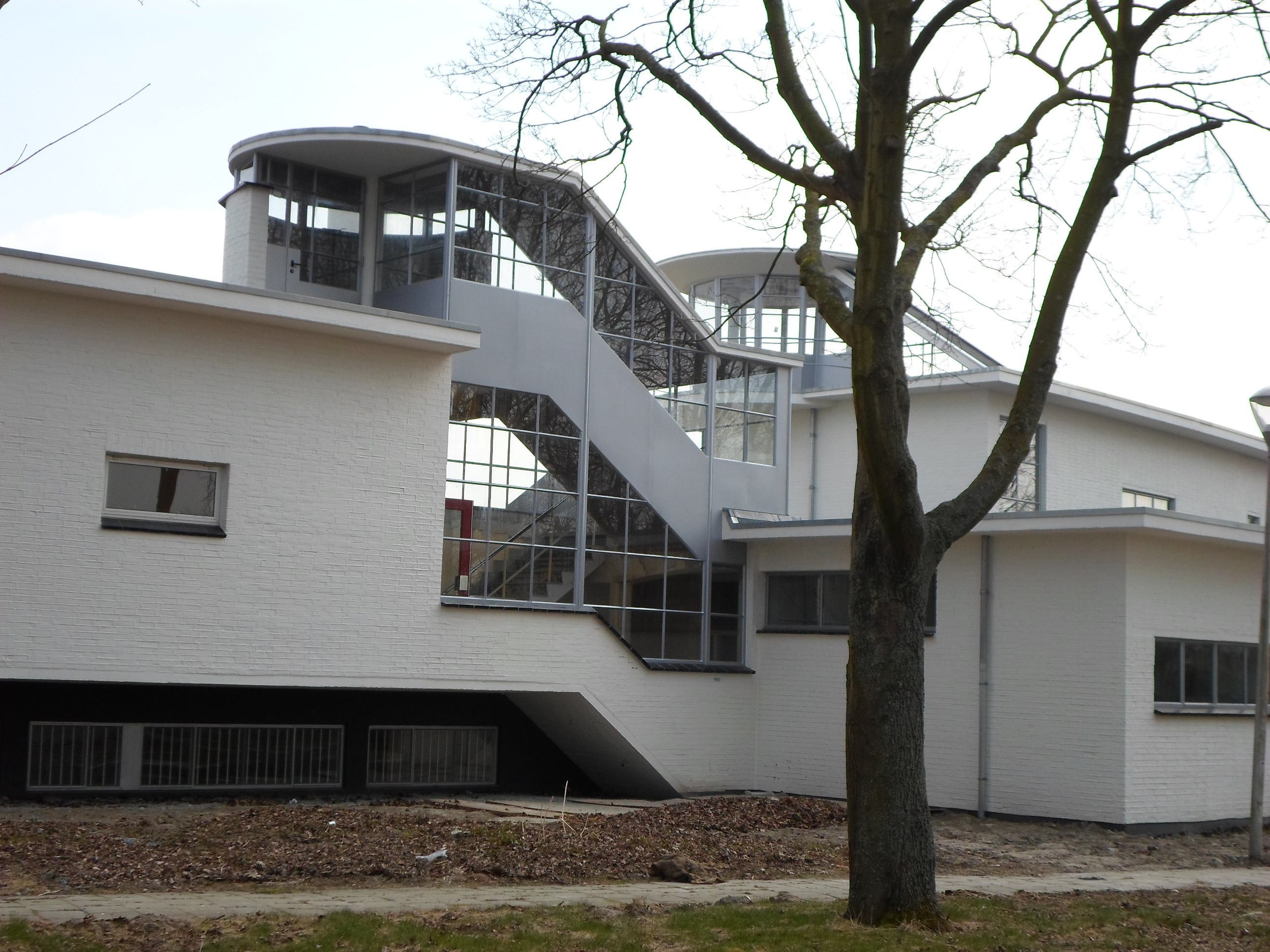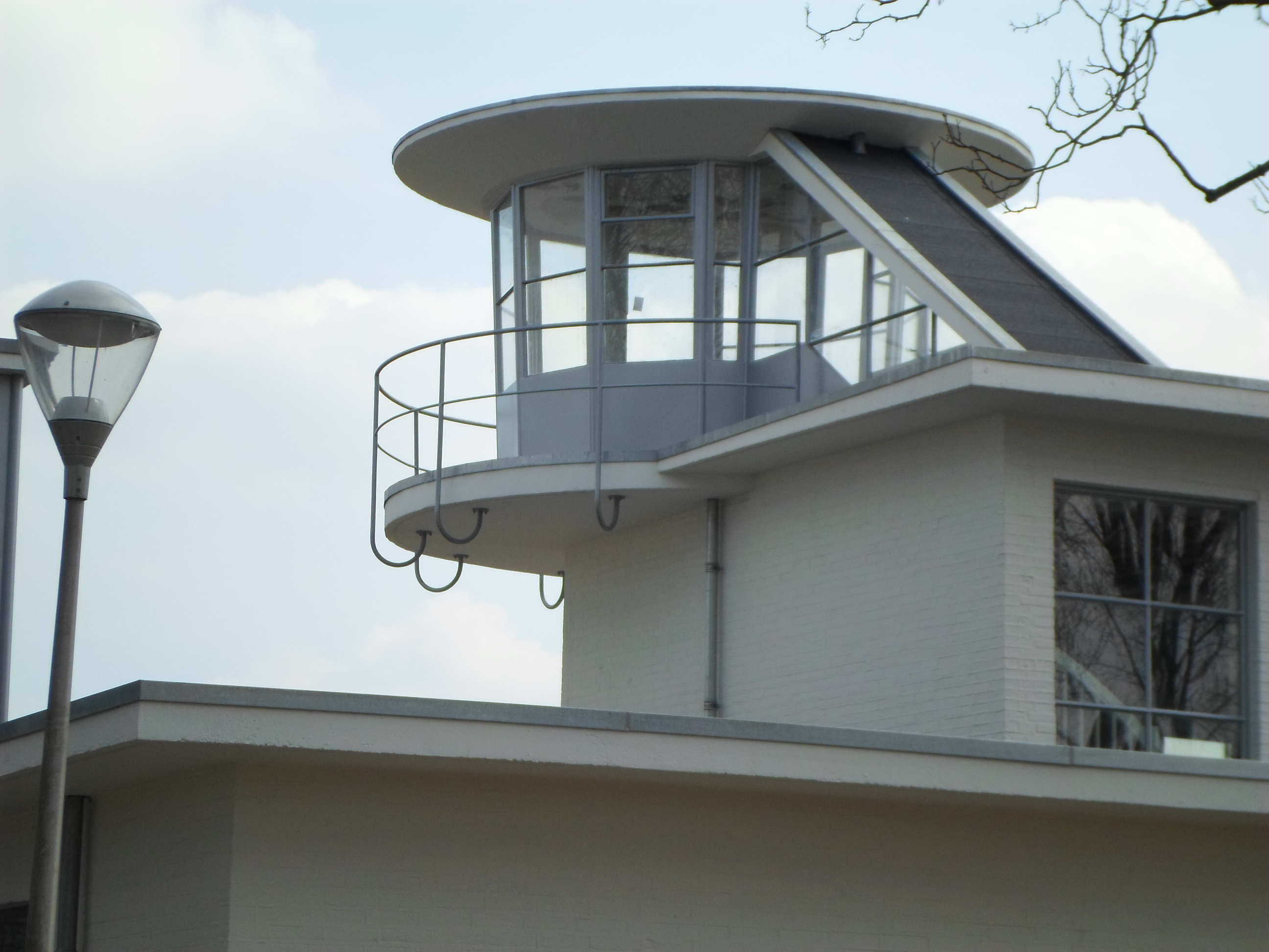 De hierop aan de noordzijde aansluitende, licht gebogen Aeroclub-vleugel heeft een teruggerooid souterrain met - nog aanwezige - horizontale keldervensters; de overkragende bel- etage heeft een afgeschuinde zijde, geintegreerd met het grotendeels transparante trappenhuis dat naar het voormalige dakterras leidt; het linkerdeel van de overkragende gevel was in oorsprong vrijwel blind, met uitzondering van de raampartijen van de uiterst links gesitueerde keuken en de in oorsprong door middel van een stalen buitentrap toegankelijke keukendeur (thans gewijzigd in een zij-ingang met betonnen buitentrap).