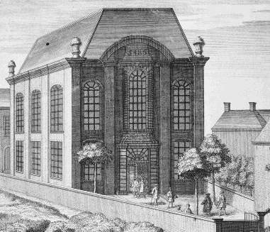 Portugees-Israelitische synagoge in 1725 gebouwd door F. du Sart naar ontwerp van Daniel Marot.