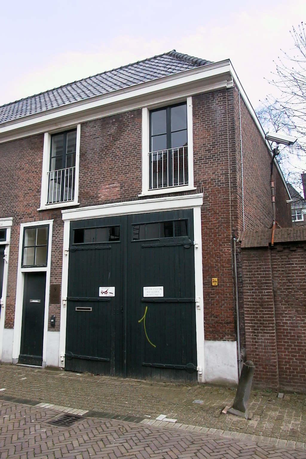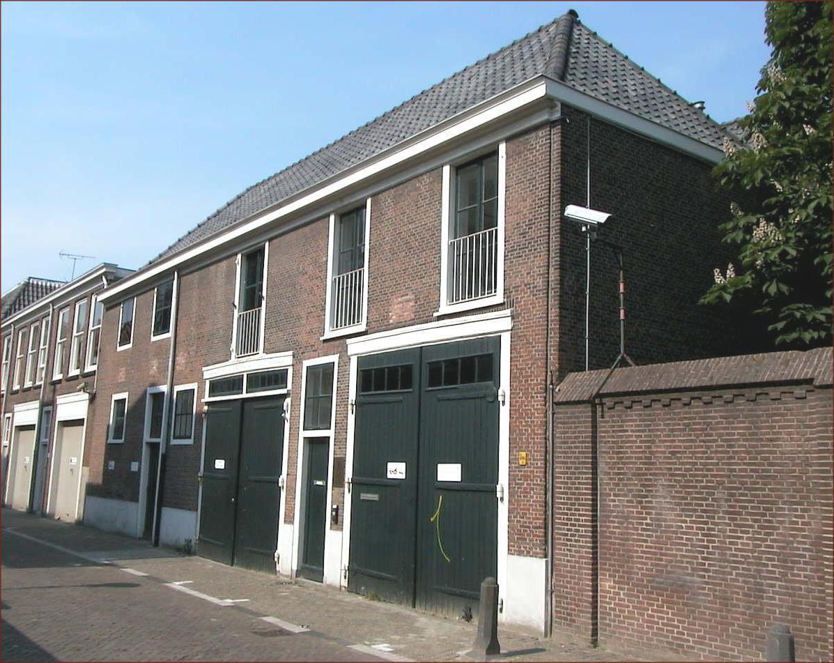 18e-Eeuws koetshuis met versierde deur en vensteromlijstingen van Princessegracht 27.