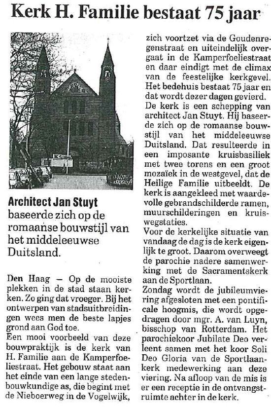 De R.K. Parochie van de H. Familie is van architectuur- en cultuurhistorische waarde als enig voorbeeld in Den Haag van een op de vroeg-romaanse Duitse kerkarchitectuur geïnspireerde bakstenen kruisbasiliek. Kunsthistorische waarde bezit de kerk vanwege de kunstwerken aan het in- en exterieur en de gebrandschilderde ramen. Tevens heeft het complex stedenbouwkundige waarde vanwege de zeer prominente ligging aan het Kamperfoelieplein in de zichtas van de Goudenregenstraat.