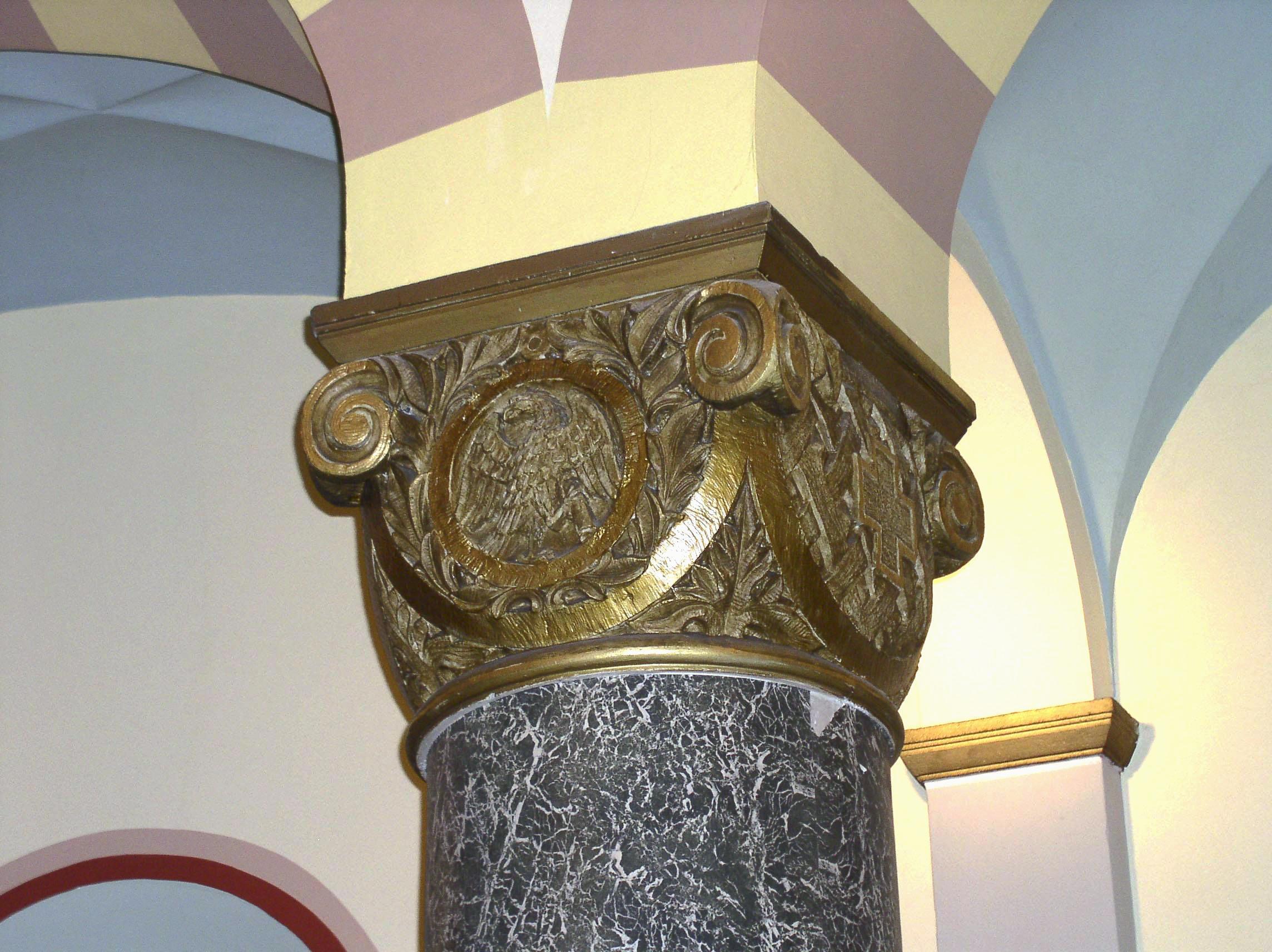 Deze hoofdentree wordt betreden door middel van een hardstenen bordestrap met ter weerszijden pylonen.