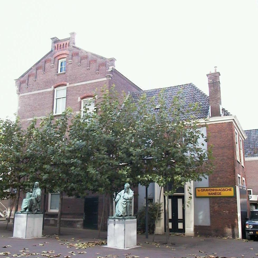 Aangebouwde L-VORMIGE STAL waarachter manege met tribune, welke in opdracht van Lodewijk-Napoleon als burger-manege zou zijn gebouwd. (Nog als zodanig in gebruik)