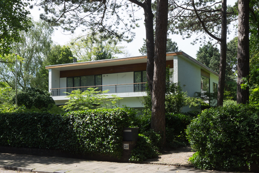 Vrijstaande villa op vierkante plattegrond uit 1957-1960 van twee bouwlagen onder een licht hellend plat dak, ontworpen door architect Hein Salomonson (1910-1994).