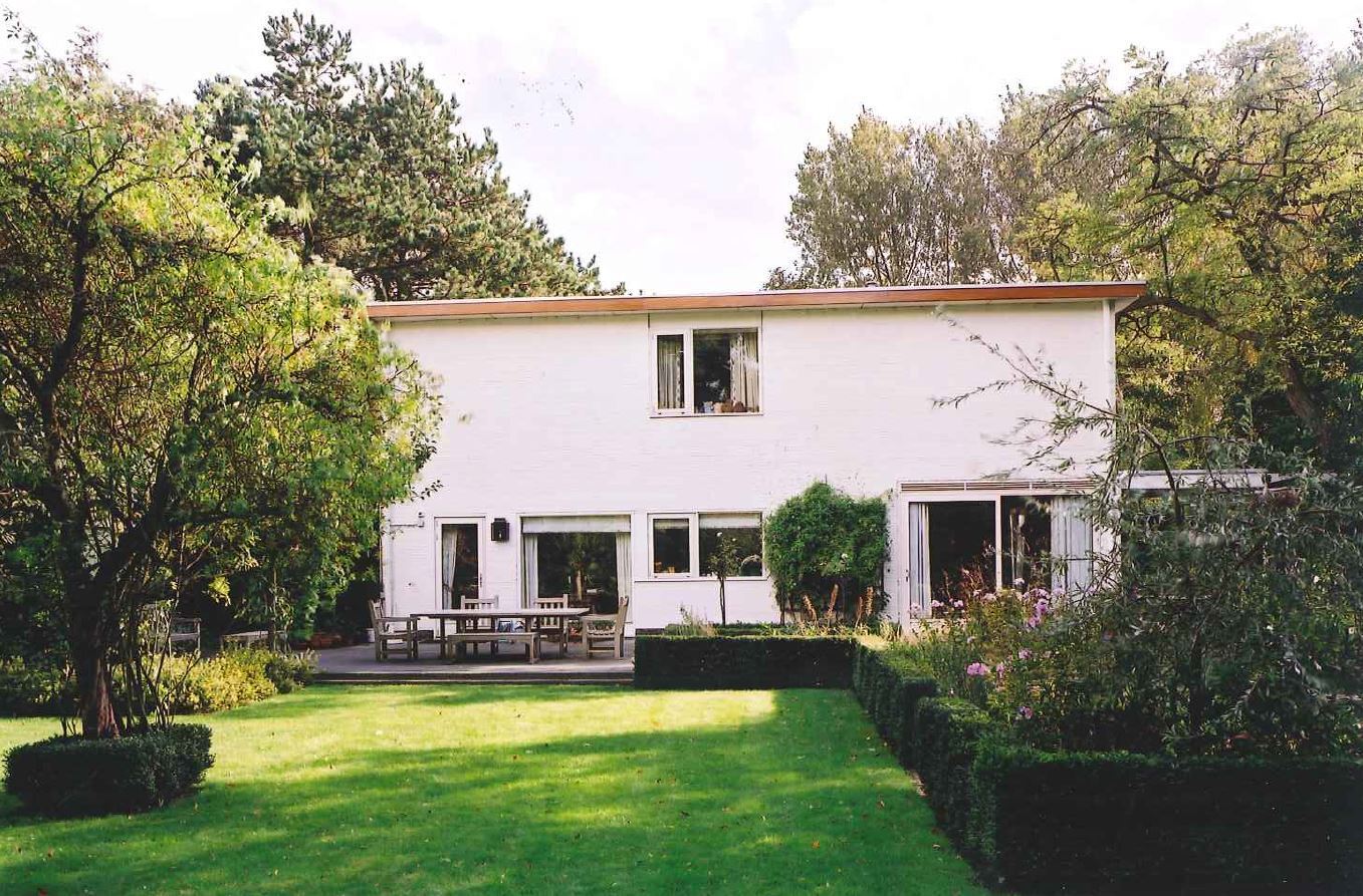 Het oorspronkelijke tuinontwerp is van tuinarchitecte Mien Ruys en omvatte een vijver en plantenvakken op verschillende niveaus. Het strakke ontwerp vormde een contrast met de natuurlijke vormen van de bestaande boombeplanting.