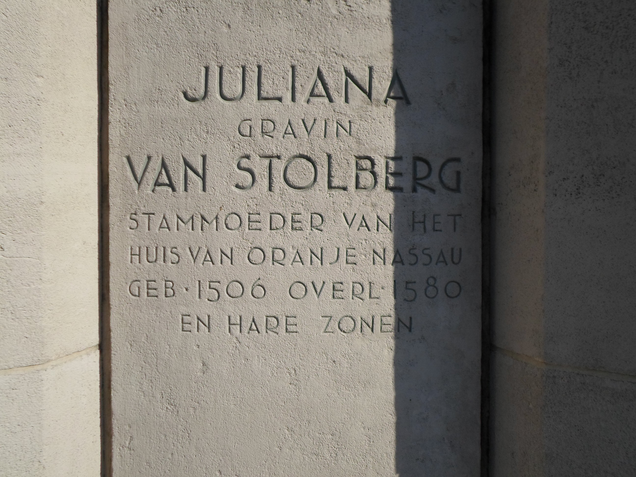 Op 20 januari 1926 wordt door het "Nationaal Comité tot het oprichten van een gedenkteeken voor Juliana Gravin van Stolberg" een verzoek hiervoor bij de gemeente ingediend. Het monument voor Juliana van Stolberg, stammoeder der Oranjes, wordt in 1930 officieel onthuld en staat dan nog op het Louise de Colignyplein. Pas na de oorlog krijgt het zijn huidige plek aan de Koningin Marialaan.