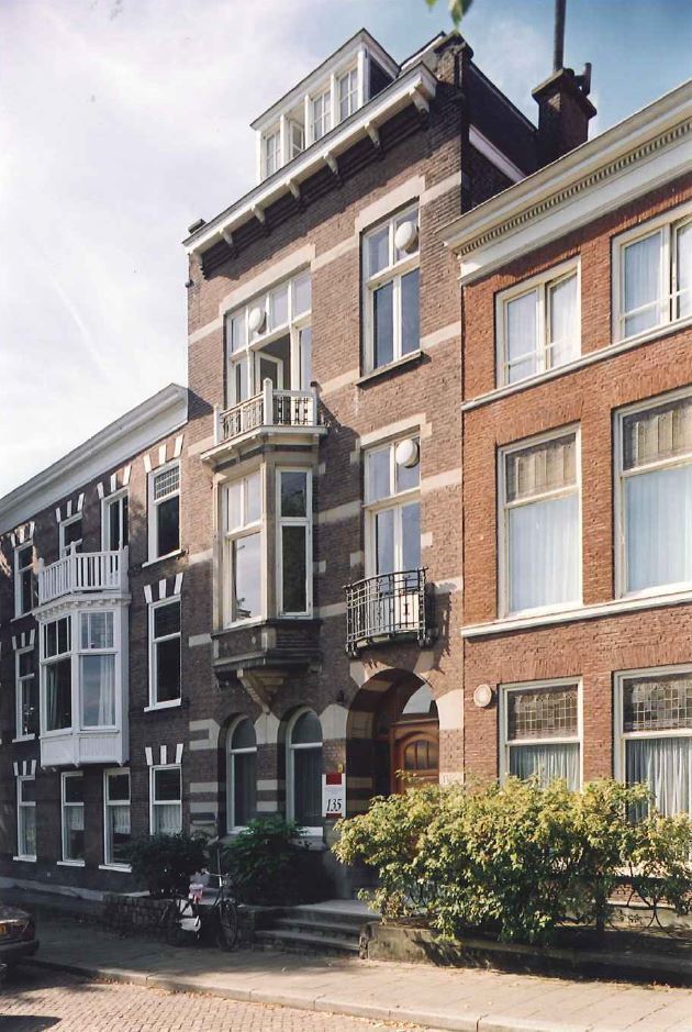 Pand ter breedte van drie vensterassen, bestaande uit parterre met twee verdiepingen. Gebouwd in 1911, architect: G.S. van der Wilde. Hardstenen sokkel, voor het overige bakstenen lijstgevel met natuurstenen blokken en banden, alsmede erker op natuurstenen consoles. Deur uit de bouwtijd; venster hierboven met ijzeren raamhekje.