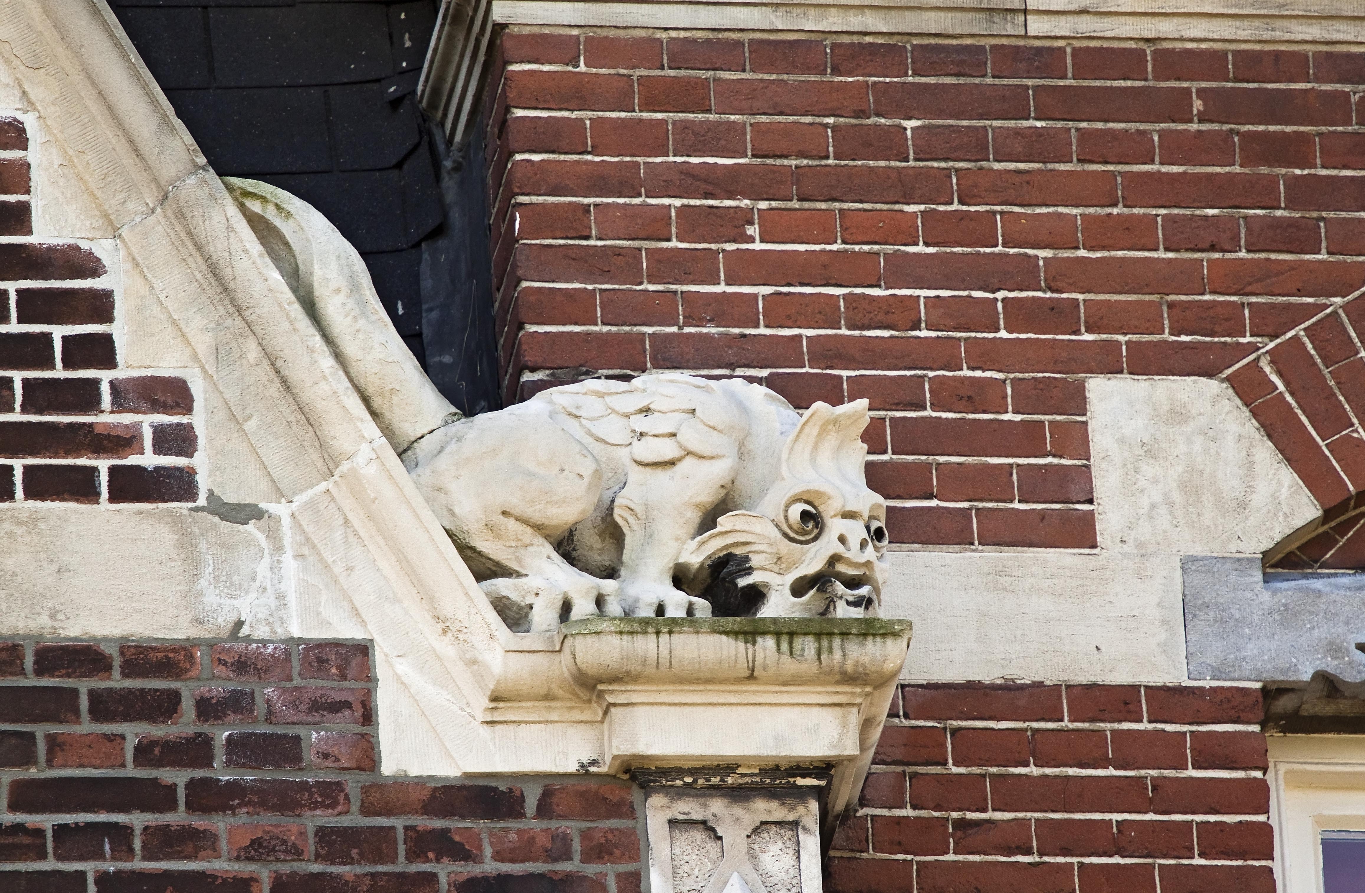 Pand met gevel in neorenaissancestijl, gedateerd 1892. Rechts risalerende partij met puntgevel waarvan de hoeken gemarkeerd worden door dierfiguren. Vensters met ontlastingsbogen; in de parterre met gebeeldhouwde vullingen; in de verdieping met metselmozaiek Boogfries tussen parterre en verdieping. Gebosseerd souterrain, deur uit de bouwtijd met daarboven balkon op consoles.