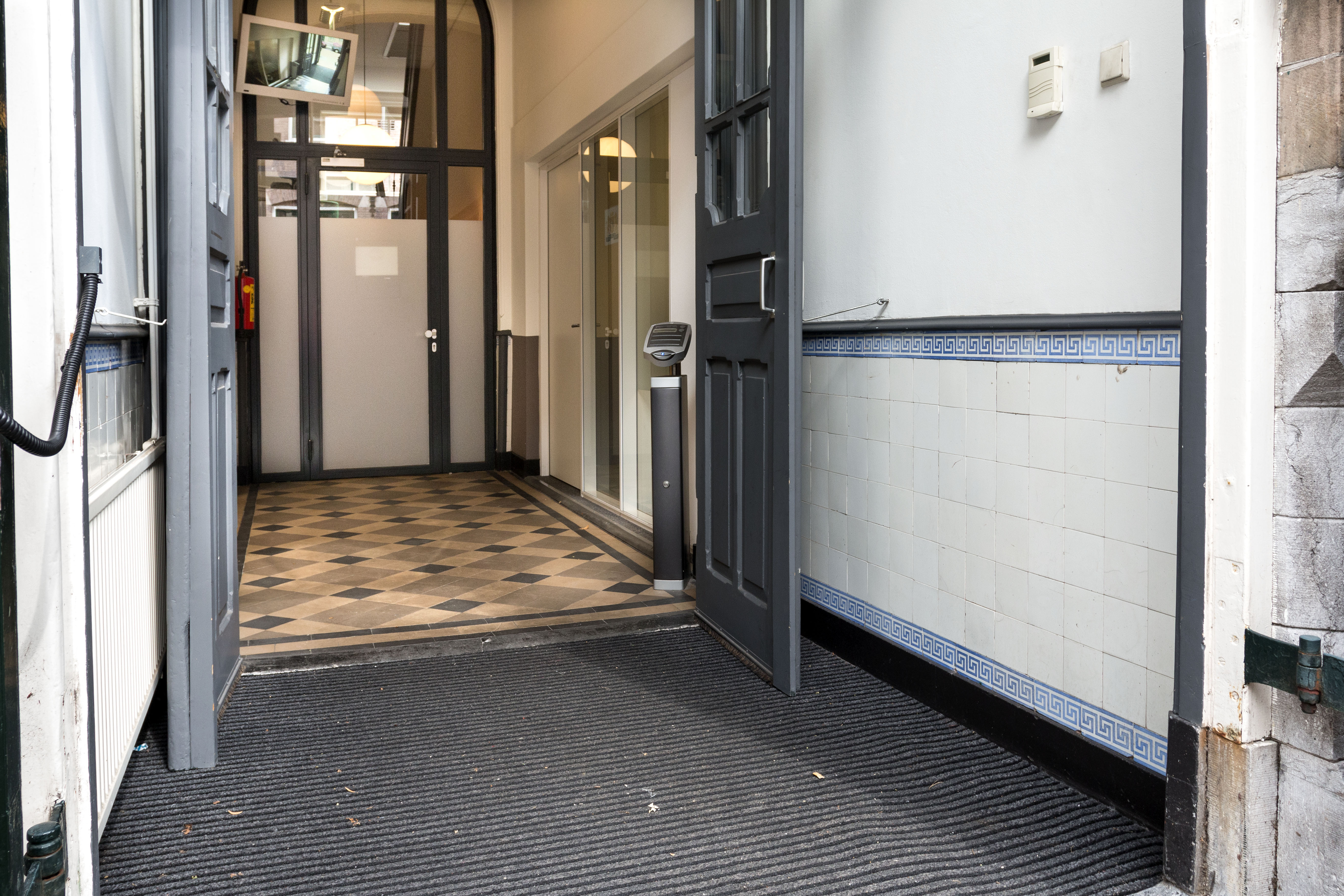De voormalige school huisvest nu de Gemeentelijke Kredietbank. In de entree is een betegelde lambrisering met Grieks meandermotief en een vloer met schuin geblokte tegels bewaard gebleven.