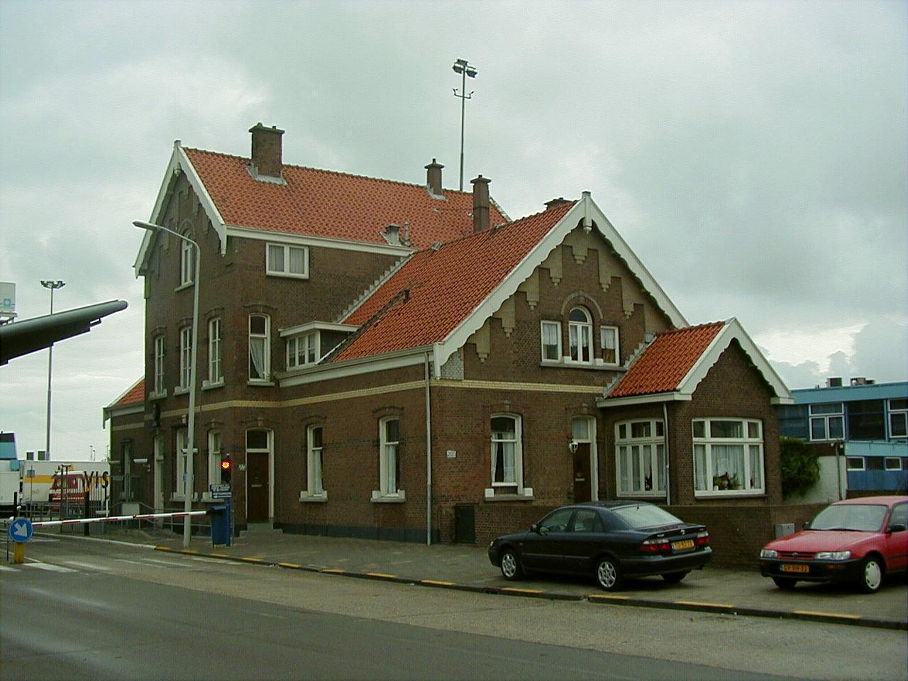 Vrijstaande gebouw met dienstwoningen uit circa 1880 behorend bij de voormalige zeesluis in het Afvoerkanaal in een voor die periode kenmerkende stijl voor Waterstaatsobjecten.