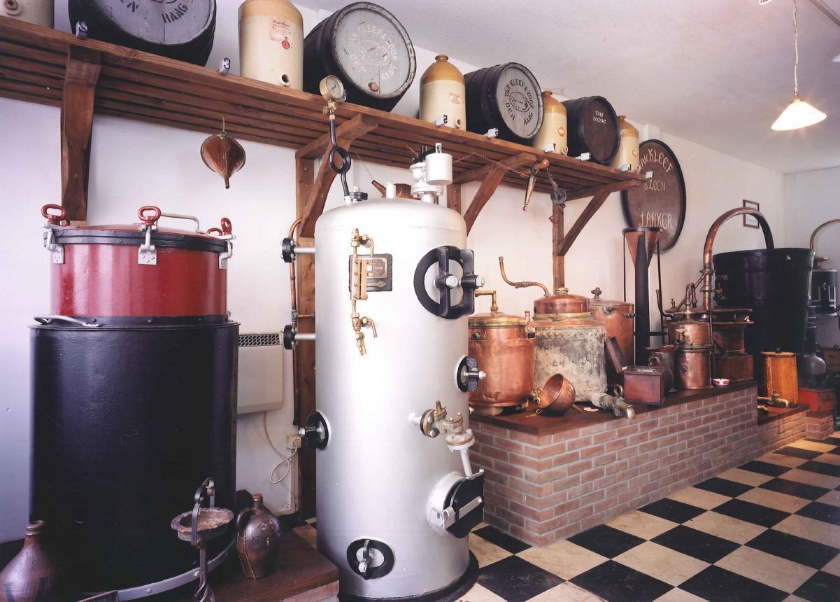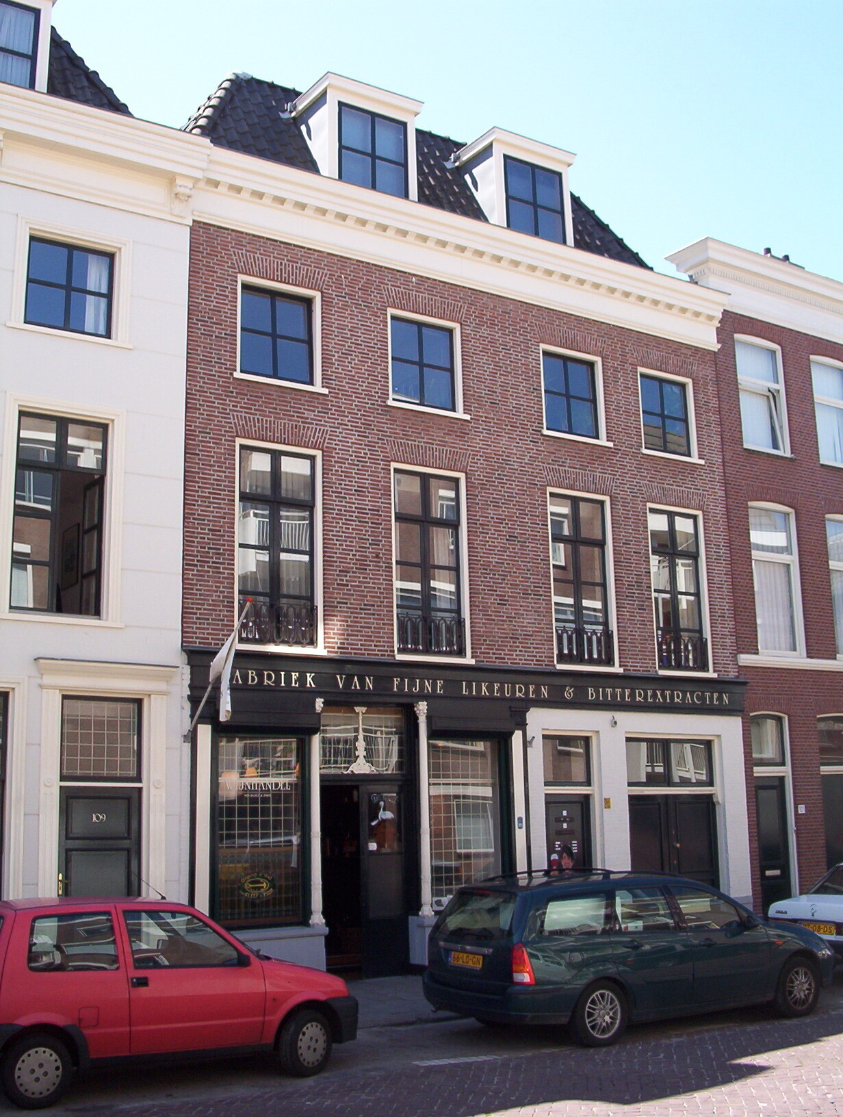 Gecombineerde woon- en bedrijfspanden uit het midden van de 19de eeuw. Witgesausde lijstgevels, elk twee traveeën breed, onder doorlopende houten kroonlijst met klossen. No. 103 heeft in de parterre een inrijdeur waarnaast de deur naar de bovenwoning; no. 105/107 bezit een goed bewaarde houten winkelpui met hardstenen sokkel en houten zuiltjes met kapitelen. Gietijzeren levensboom boven de in het midden geplaatste winkeldeur. In het fries boven de onderpui het opschrift: "Fabriek van fijne likeuren & bitterextracten". De vensters van de eerste verdieping hebben gietijzeren raamhekjes. No. 103 draagt een schilddak met de nok loodrecht op de straat; no. 105/107 heeft een schilddak met de nok evenwijdig aan de straat doorlopend over het belendende no. 109. In no. 103 op de begane-grond een 19de-eeuwse distilleerderij; in no. 105/107 een eveneens 19de-eeuwse slijterij met vaten van Kaukasisch eikenhout.