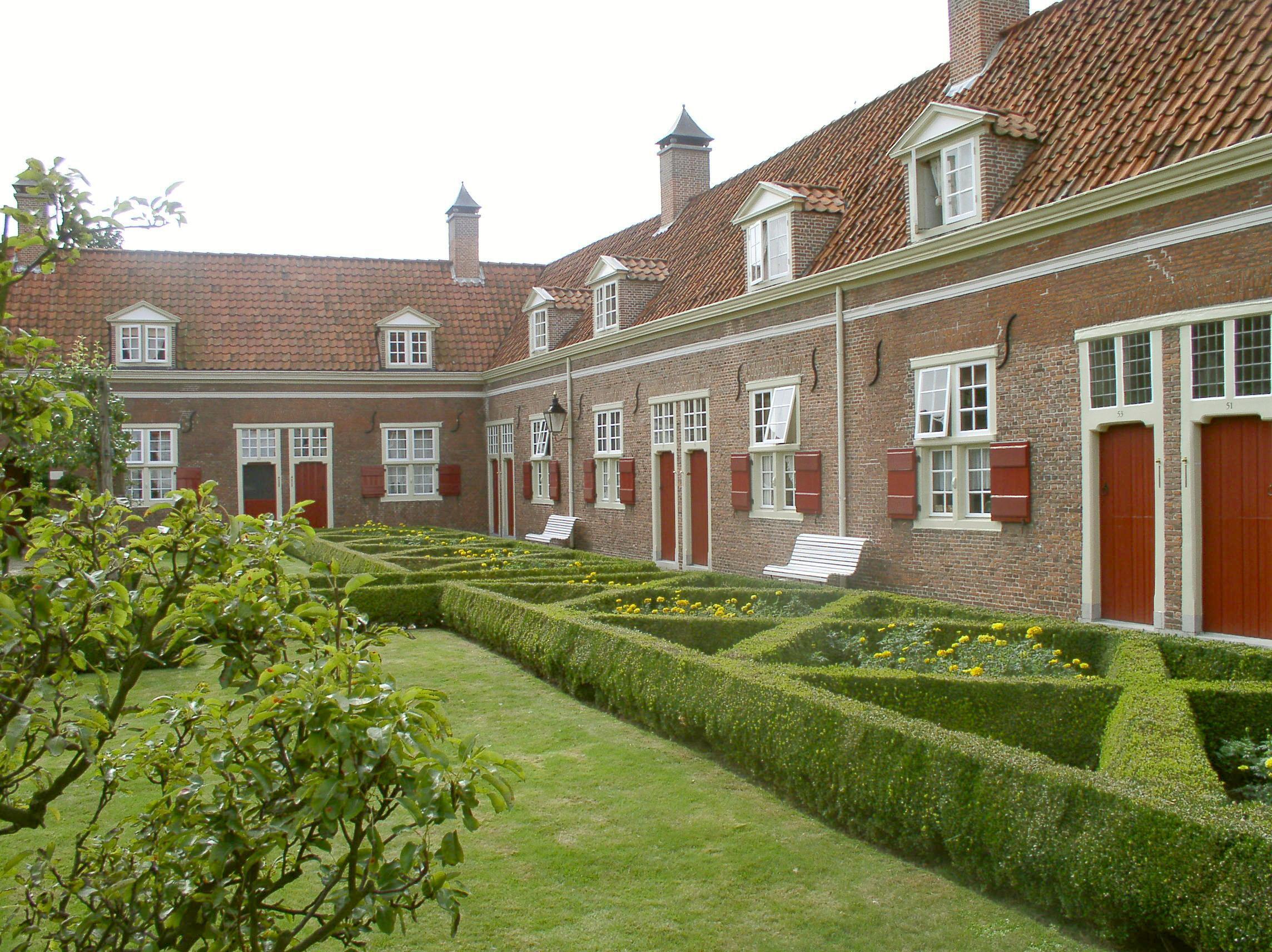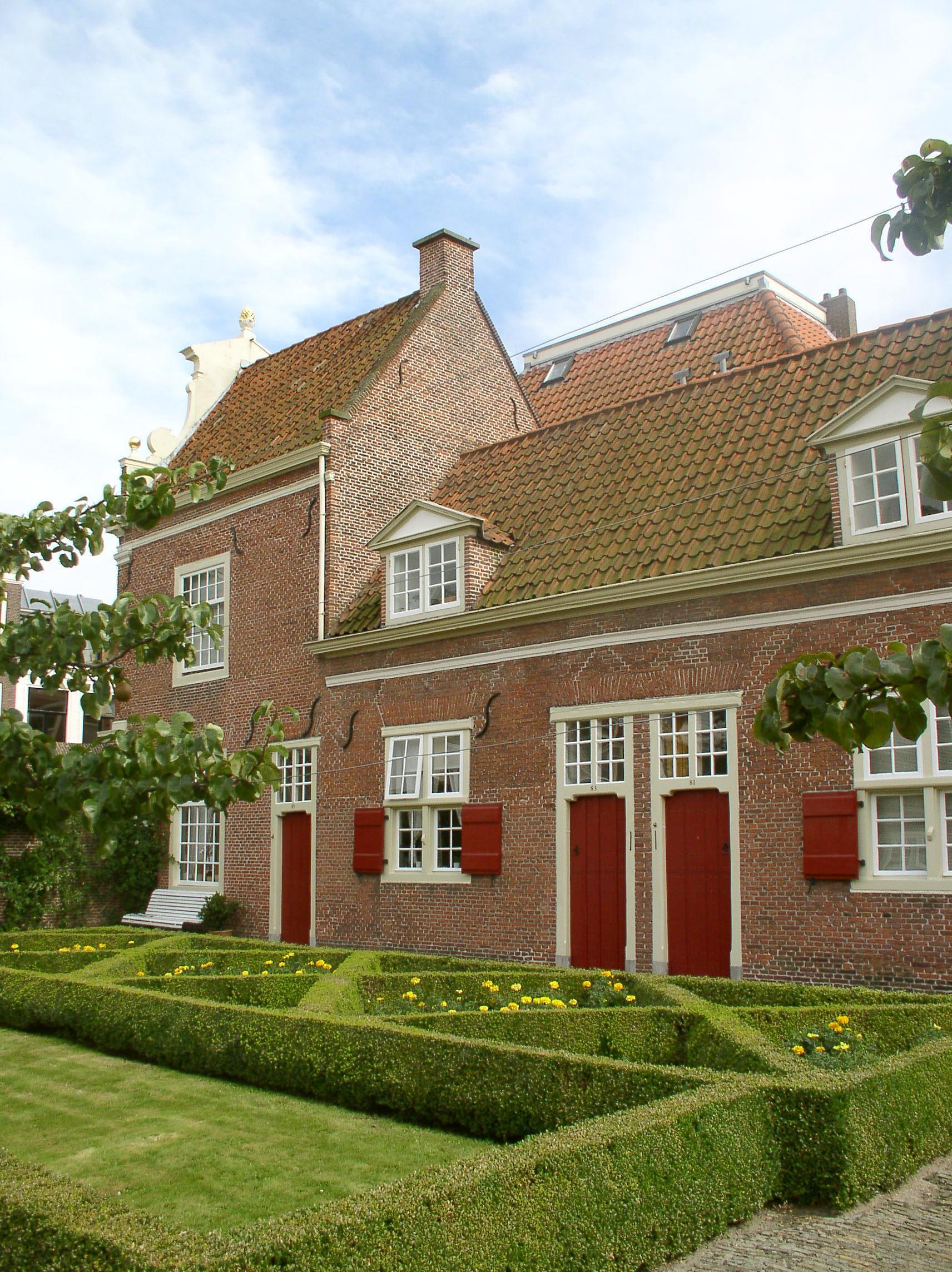 Hofje van Cornelia van Wouw, gebouwd in 1647, 16 woningen om een binnenplaats, van de straat gescheiden door een muur tussen twee hoger opgetrokken hoekpanden, in het inwendige nog verscheidene onderdelen uit de bouwtijd.