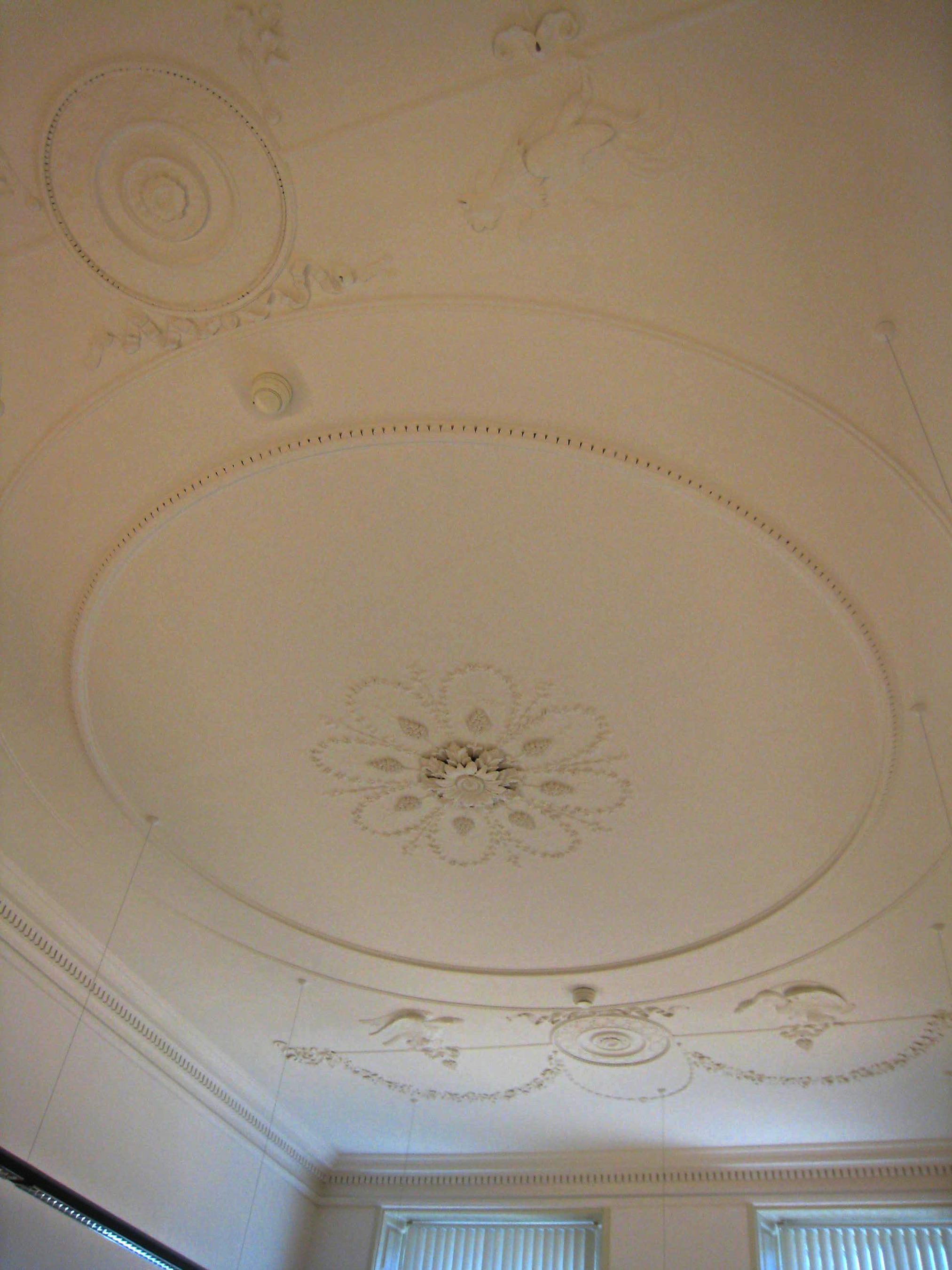 Pand met gevel in Lodewijk XIV stijl met natuurstenen plint en versierde middenpartij, interieurs in dezelfde stijl.
