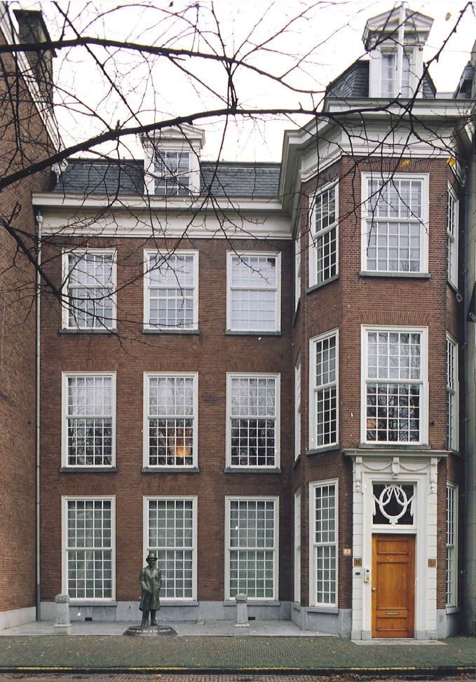 Pand met gevel met naar voren springende ingangspartij in Lodewijk XVI stijl.