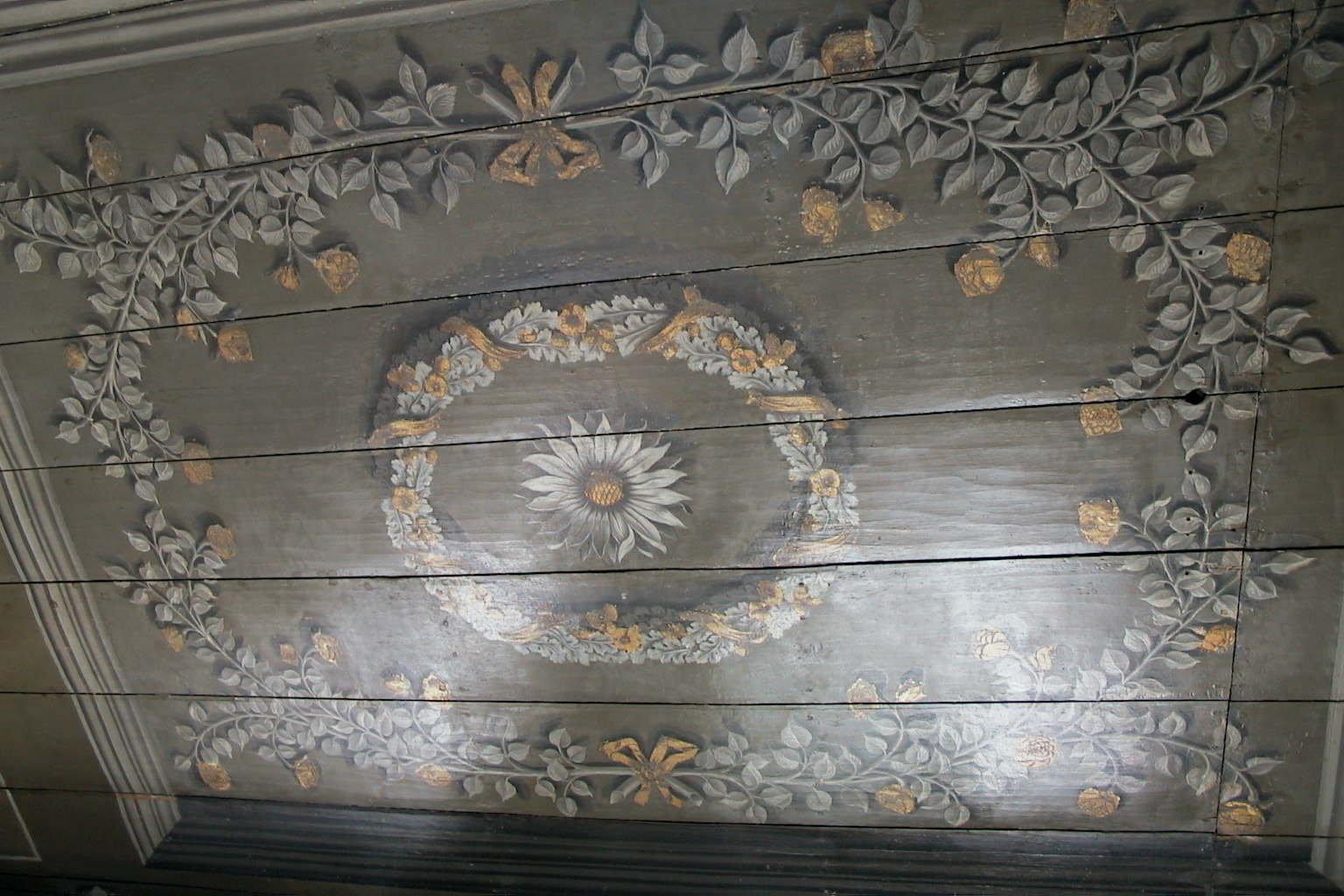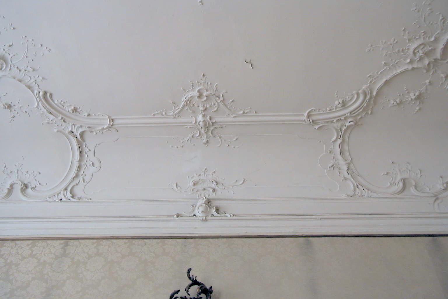 Pand met bakstenen gevel, middenstuk terugliggend, versierde ingangspartij; inwendig stucdecoraties in Lodewijk XIV en rococo-stijl.