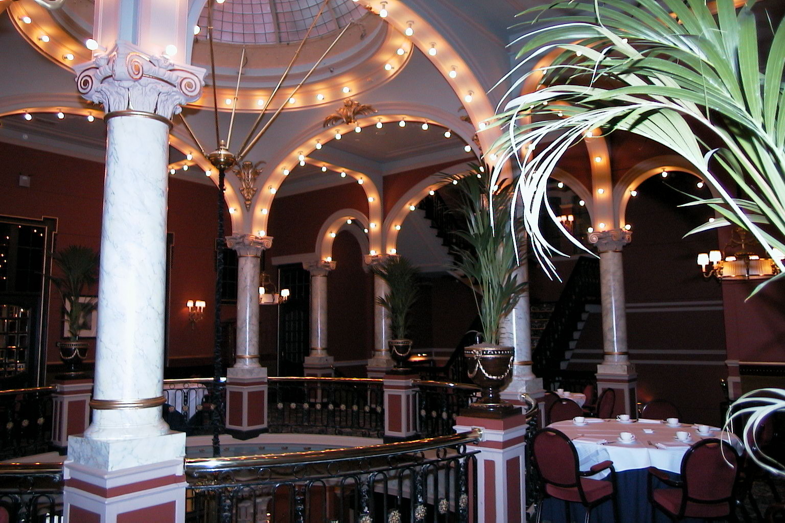 Hotel des Indes - fors bouwwerk uit de tweede helft van de 19e eeuw met natuurstenen gevel - weelderige interieurs uit de bouwtijd.