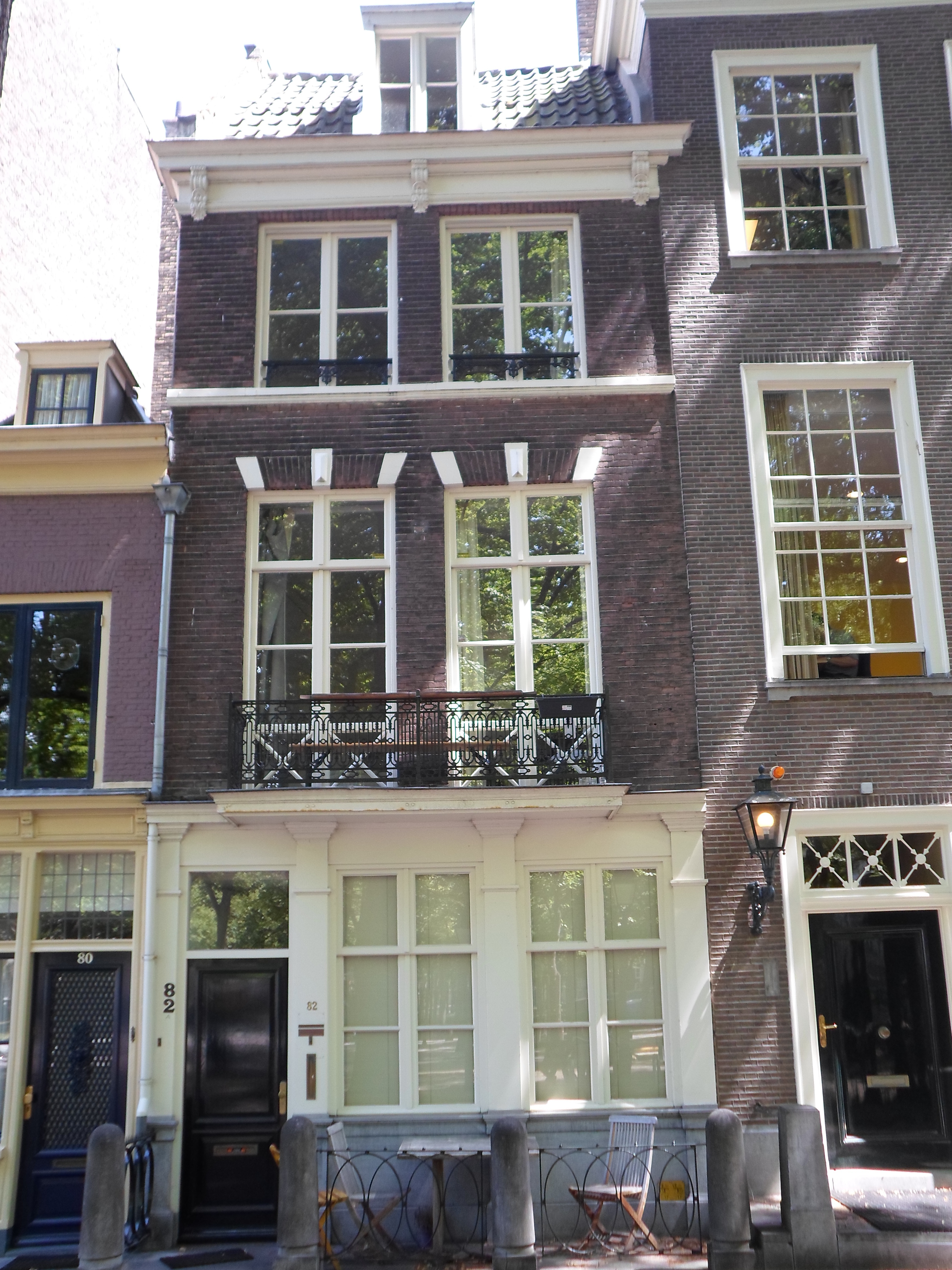 Pand met bakstenen gevel uit de 19e eeuw met kroonlijst op gesneden consoles.